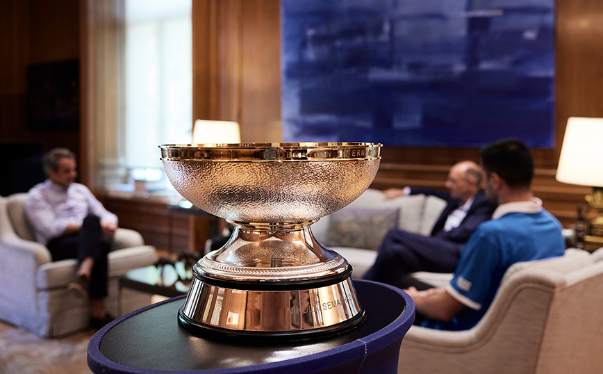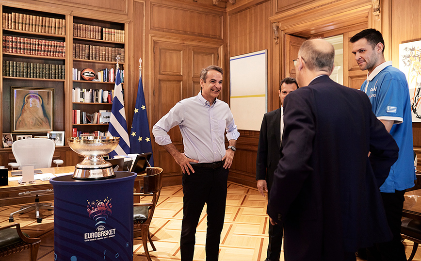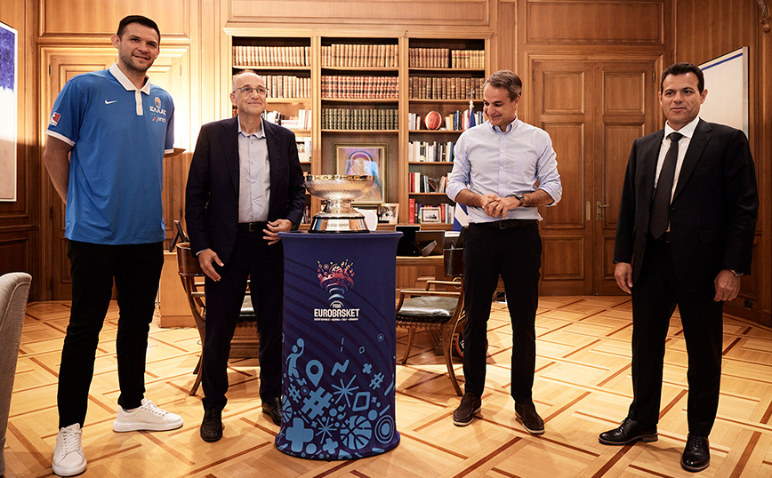 Ο πρωθυπουργός Κυριάκος Μητσοτάκης συναντήθηκε το πρωί στο Μέγαρο Μαξίμου με τον πρόεδρο της Ελληνικής Ομοσπονδίας Καλαθοσφαίρισης Ευάγγελο Λιόλιο, τον ομοσπονδιακό προπονητή Δημήτρη Ιτούδη και τον διεθνή Κώστα Παπανικολάου οι οποίοι του παρουσίασαν το επίσημο τρόπαιο του Eurobasket 2022, στο πλαίσιο της περιοδείας του κυπέλλου στις χώρες που συμμετέχουν στη διοργάνωση.