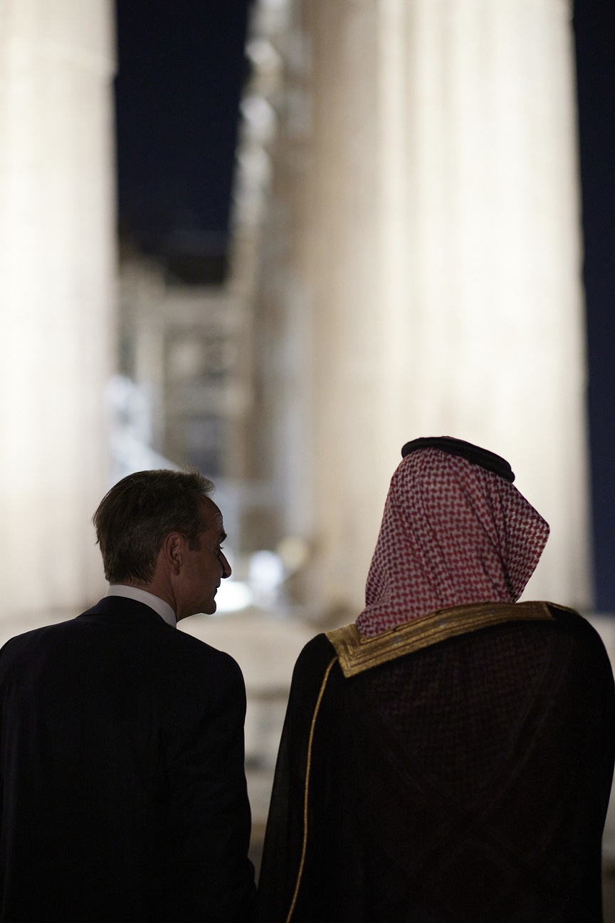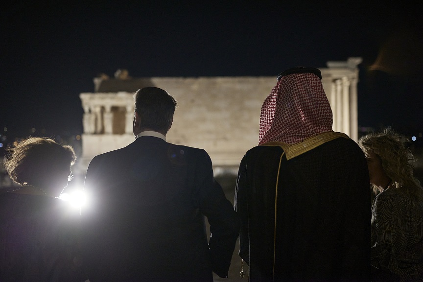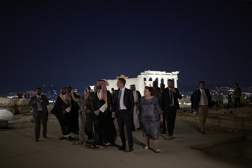 Ο Πρωθυπουργός Κυριάκος Μητσοτάκης και ο Πρίγκιπας Διάδοχος της Σαουδικής Αραβίας, Μοχάμεντ Μπιν Σαλμάν πραγματοποίησαν σύντομη επίσκεψη στον Ιερό Βράχο της Ακρόπολης συνοδευόμενοι από την Υπουργό Πολιτισμού και Αθλητισμού, Λίνα Μενδώνη.