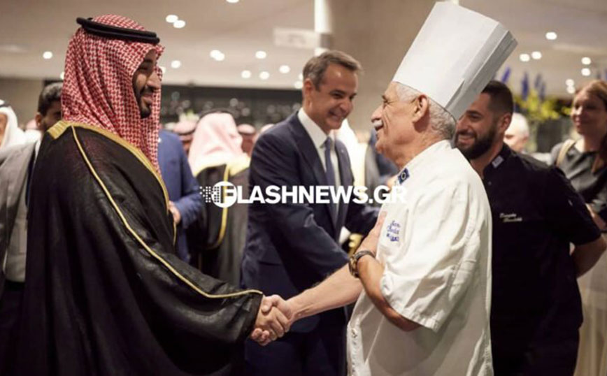 Στο δείπνο του πρωθυπουργού Κυριάκου Μητσοτάκη, με τον Σαουδάραβα και τη συνοδεία του, η κουζίνα είχε γεύσεις από την Κρήτη τις οποίες ετοίμασε ο Χανιώτης σεφ, Στέφανος Μπουρδάκης.