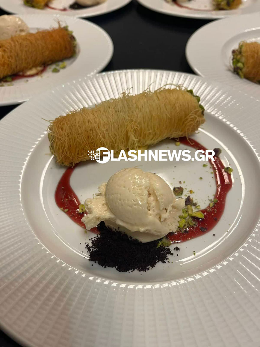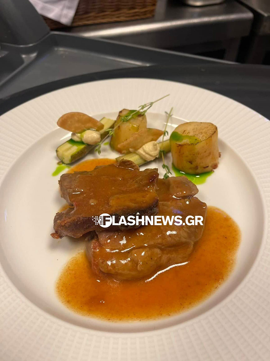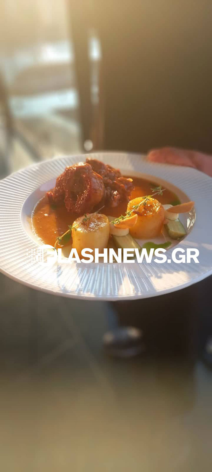 Το Flashnews παρουσιάζει φωτογραφίες από τα πιάτα, με το κρητικό μενού να περιλαμβάνει: