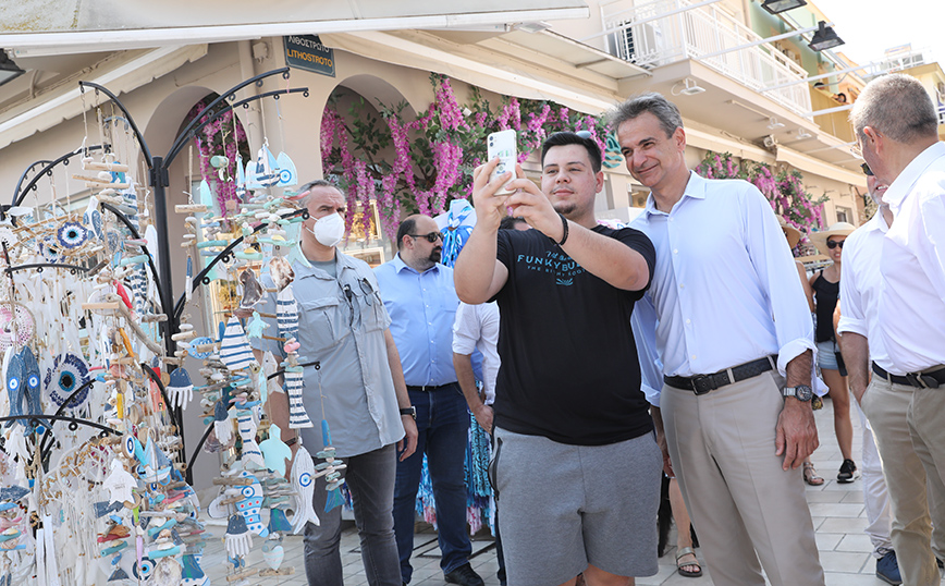 Ο Κυριάκος Μητσοτάκης στη συνέχεια περπάτησε σε κεντρικούς δρόμους του Αργοστολίου και συνομίλησε με πολίτες σε καφέ της πόλης.
