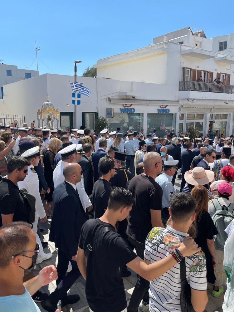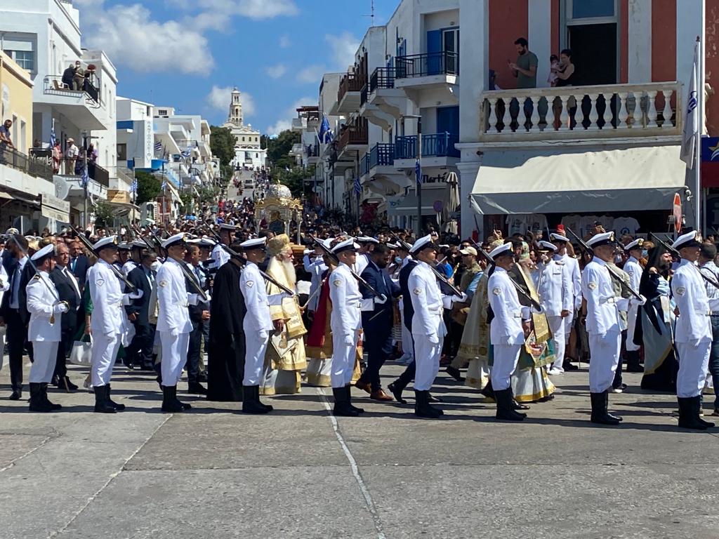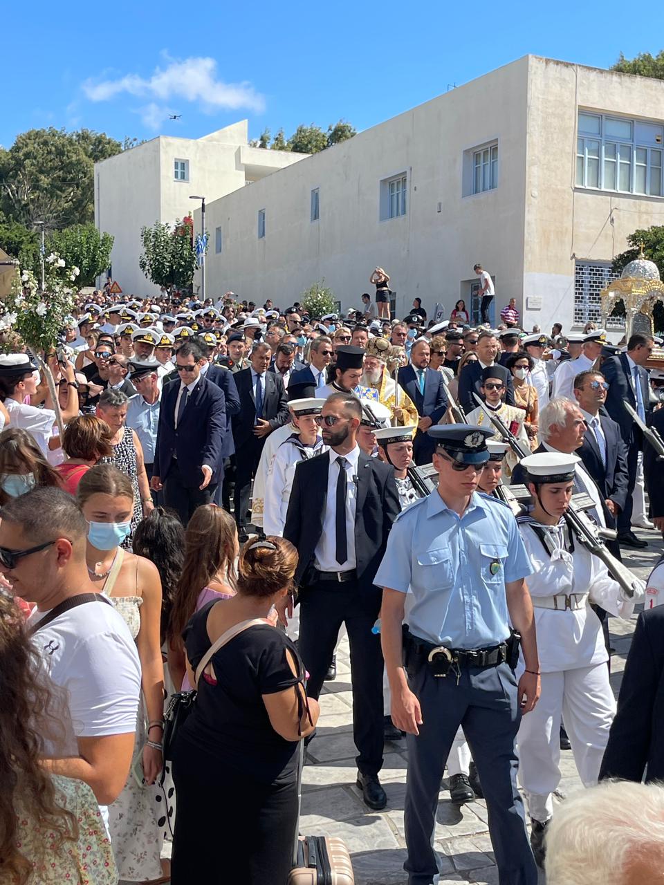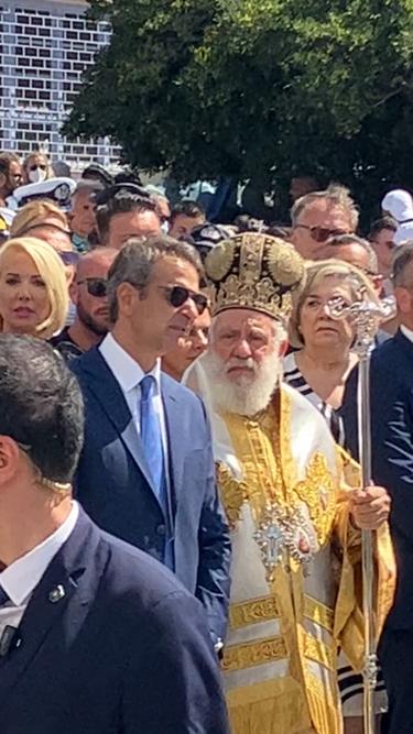Νωρίτερα σε κλίμα συγκίνησης ο πρωθυπουργός Κυριάκος Μητσοτάκης απέτισε φόρο τιμής σ’ εκείνους που έχασαν την ζωή τους στις 15 Αυγούστου 1940 όταν οι Ιταλοί τορπίλισαν το καταδρομικό Έλλη το οποίο βρισκόταν στο λιμάνι της Τήνου για να τιμήσει την γιορτή της Παναγίας.