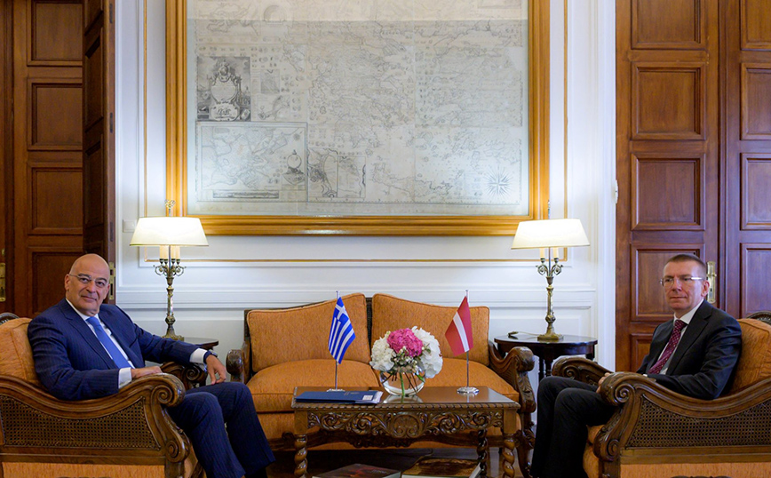 Με τον Λετονό ομόλογό του Έντγκαρς Ρίνκεβιτς συναντήθηκε την Πέμπτη (1/9) στο υπουργείο Εξωτερικών ο Νίκος Δένδιας. «Τα όργανα του ΝΑΤΟ, ξεκινώντας από την ηγεσία, τον γενικό γραμματέα, πρέπει να σέβονται και να τιμούν το σύνολο των συμμάχων και τις αρχές της Συμμαχίας», υπογράμμισε σε δηλώσεις του μετά το τετ α τετ τους.