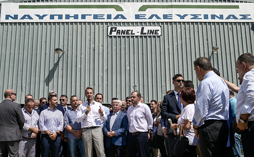 Τα Ναυπηγεία Ελευσίνας, τα οποία αποτελούν κρίσιμο πυλώνα για την Εθνική Αμυντική Βιομηχανία με εξασφαλισμένες θέσεις εργασίας, επισκέφθηκε το μεσημέρι της Παρασκευής ο πρωθυπουργός, Κυριάκος Μητσοτάκης, έπειτα από την ψήφιση την Τετάρτη στη Βουλή του νομοσχεδίου για την εξυγίανσή τους.