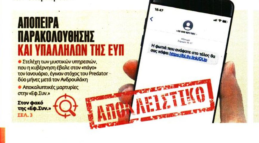 Με αφορμή σημερινό δημοσίευμα της «Εφημερίδας των Συντακτών» με τίτλο «Απόπειρα παρακολούθησης και υπαλλήλων της ΕΥΠ», ο ΣΥΡΙΖΑ-ΠΣ ρωτά με ανακοίνωσή του τον πρωθυπουργό Κυριάκο Μητσοτάκη: «Η ΕΥΠ ή ιδιώτης παρακολουθούσε μη αρεστούς υπαλλήλους της ΕΥΠ με το Predator;».