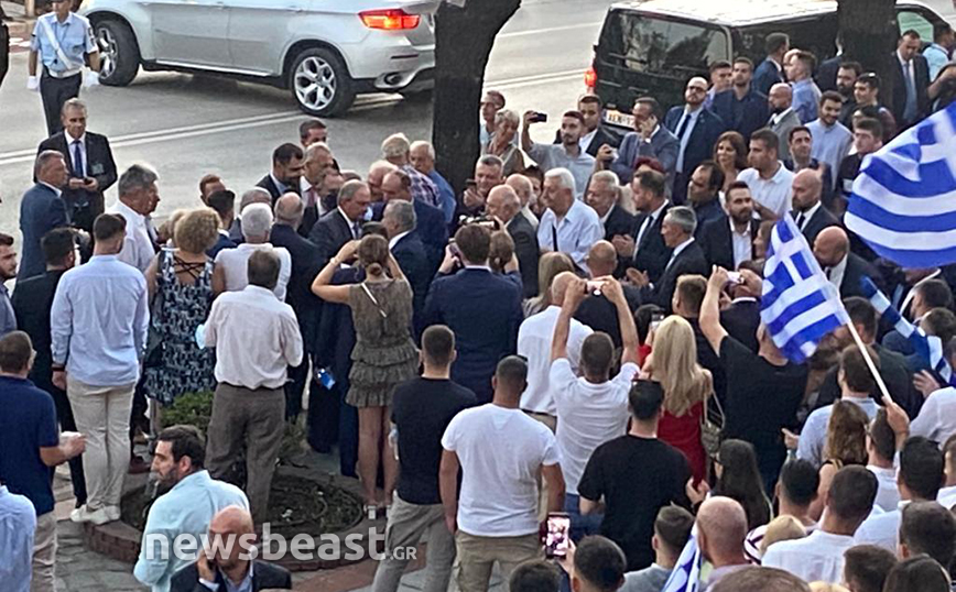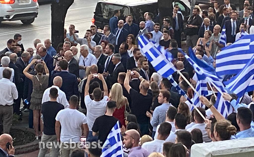Πριν από λίγο έφτασε ο πρώην πρωθυπουργός, Κώστας Καραμανλής ο οποίος έγινε δεκτός με χειροκροτήματα ενώ πλήθος κόσμου ανέμιζε ελληνικές σημαίες.