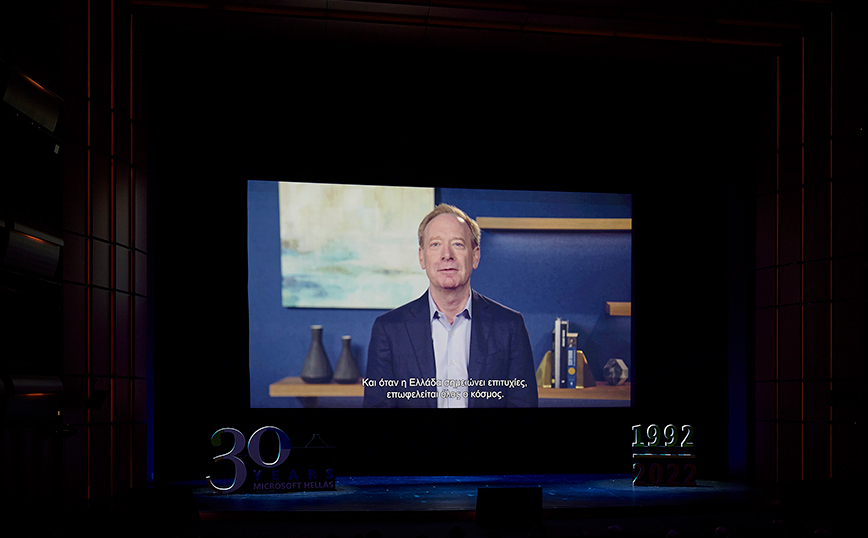 «Τα 30 χρόνια συνεργασίας μας ήταν εκπληκτικά. Ήταν μια καταπληκτική εμπειρία για εμάς ως εταιρεία και ως κοινότητα εργαζομένων να συμμετέχουμε σε όσα έχει πετύχει η Ελλάδα. Τα χρόνια αυτά σημαδεύτηκαν από δοκιμασίες, προκλήσεις και αναταράξεις. Αλλά, το σημαντικότερο, σημαδεύτηκαν και από τις ολοένα και μεγαλύτερες επιτυχίες της Ελλάδας και της ελληνικής οικονομίας τα τελευταία χρόνια. Εγώ αλλά και όλοι όσοι εργάζονται στη Microsoft στην Ελλάδα, πιστεύουμε και ελπίζουμε πως η τεχνολογία και τα εργαλεία ψηφιακού μετασχηματισμού θα οδηγήσουν τη χώρα, σε ένα ακόμα πιο συναρπαστικό μέλλον», σημείωσε σε βιντεοσκοπημένο μήνυμά του ο Πρόεδρος της Microsoft, Brad Smith, προσθέτοντας πως «οι δυνατότητες είναι απεριόριστες. Αυτό ίσχυε πάντα στην Ελλάδα. Και όταν η Ελλάδα τα καταφέρνει, όλος ο κόσμος επωφελείται από την επιτυχία αυτή».
