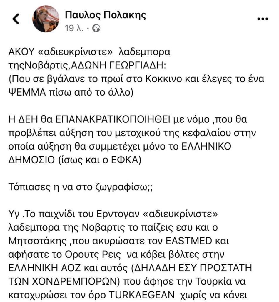 Δείτε την ανάρτηση του Παύλου Πολάκη
