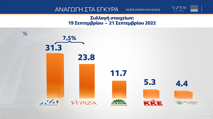 Στις 7,5 μονάδες η διαφορά στη δημοσκόπηση του OPEN