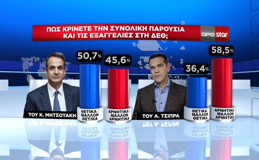 Μητσοτάκης: 50,7% θετικά και μάλλον θετικά, 45,6% αρνητικά και μάλλον αρνητικά