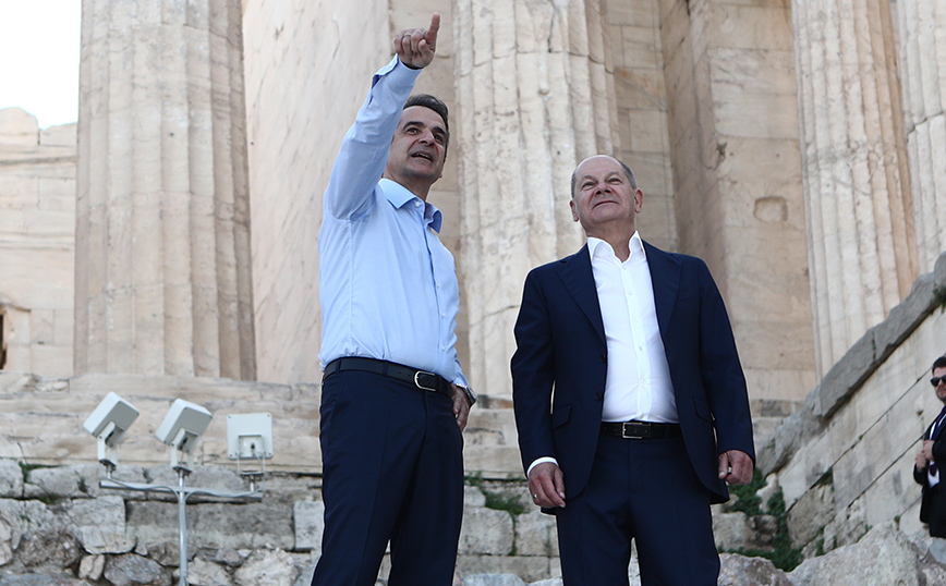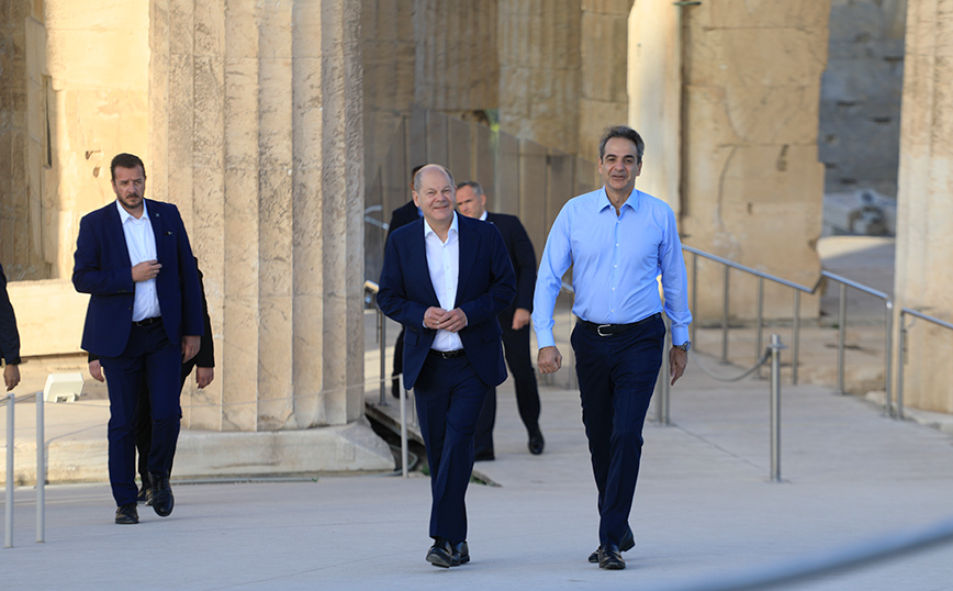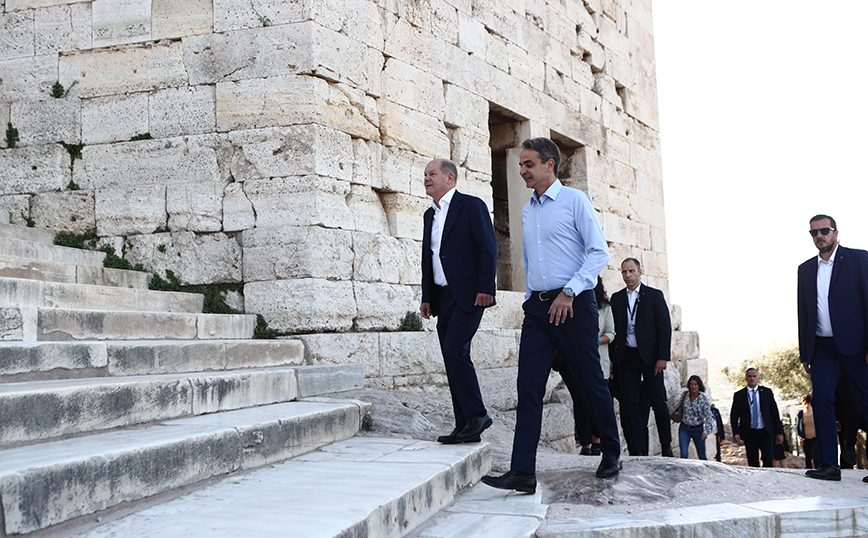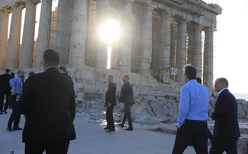 Τον αρχαιολογικό χώρο της Ακρόπολης επισκέπτηκαν ο πρωθυπουργός Κυριάκος Μητσοτάκης και ο καγκελάριος της Γερμανίας Όλαφ Σολτς, ο οποίος πραγματοποιεί επίσκεψη στην Ελλάδα. Ο πρωθυπουργός ξενάγησε τον καγκελάριο στον χώρο του Ιερού Βράχου.