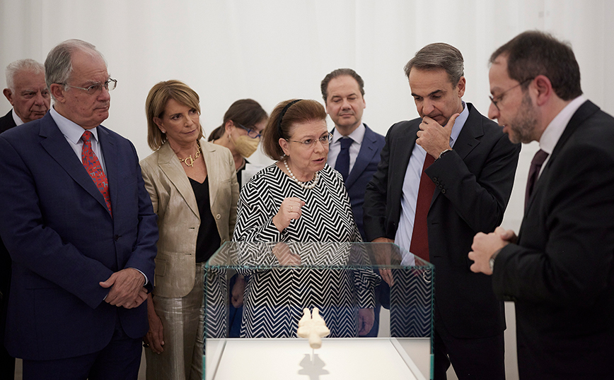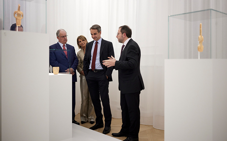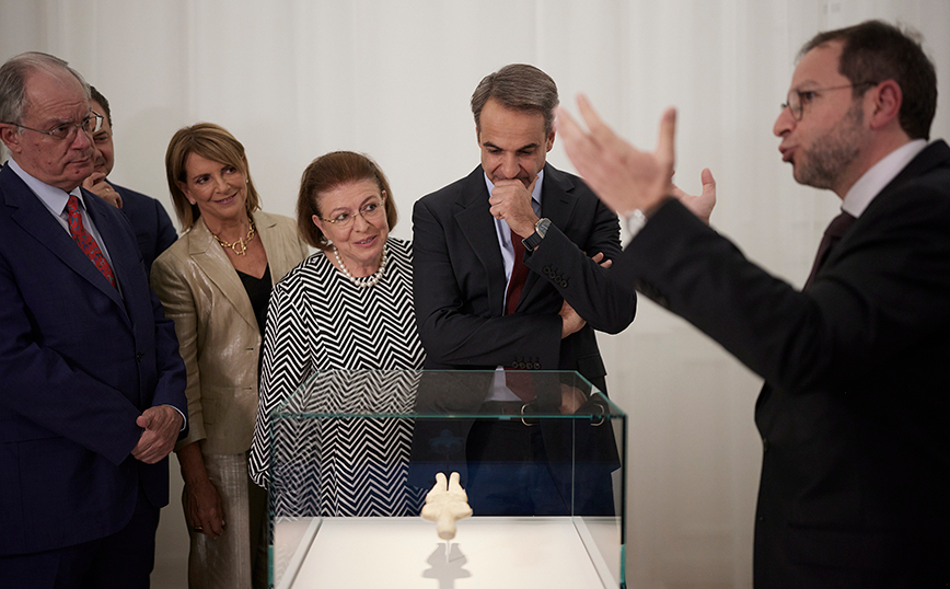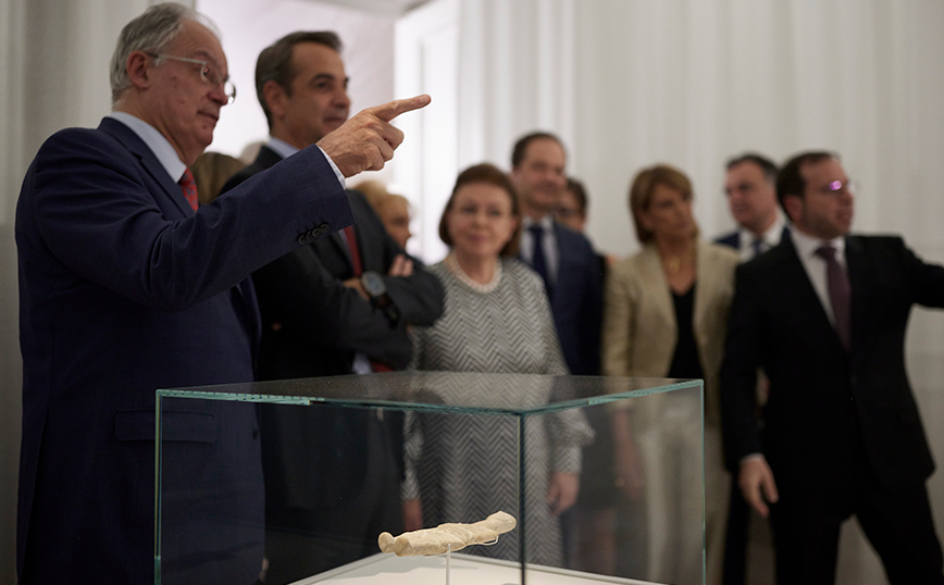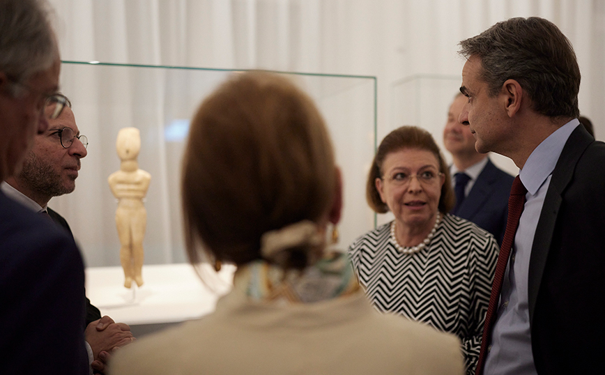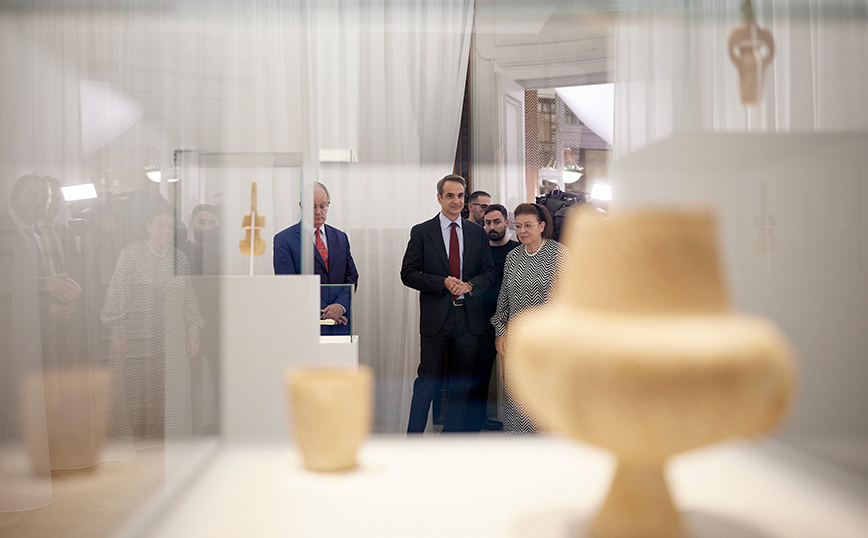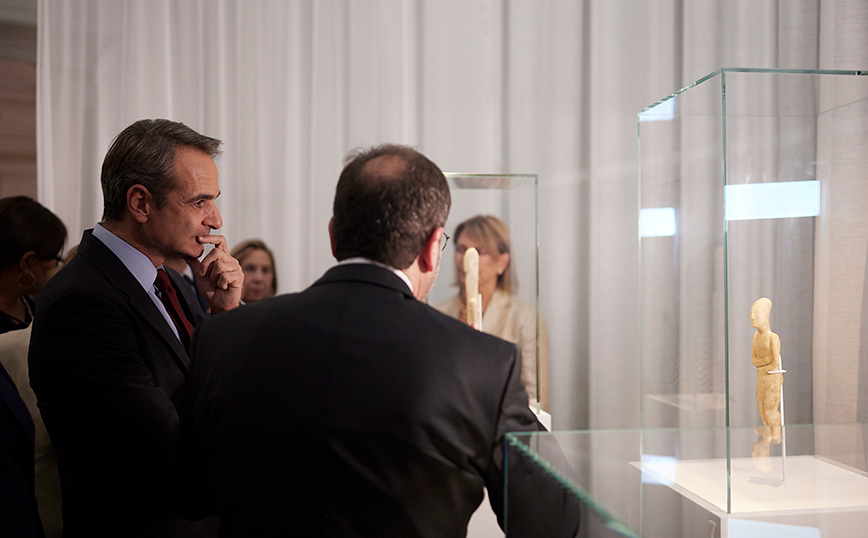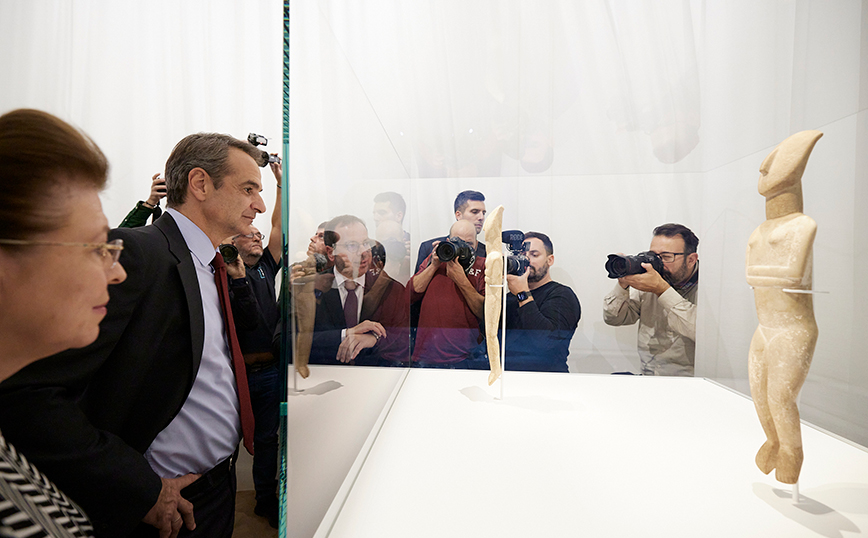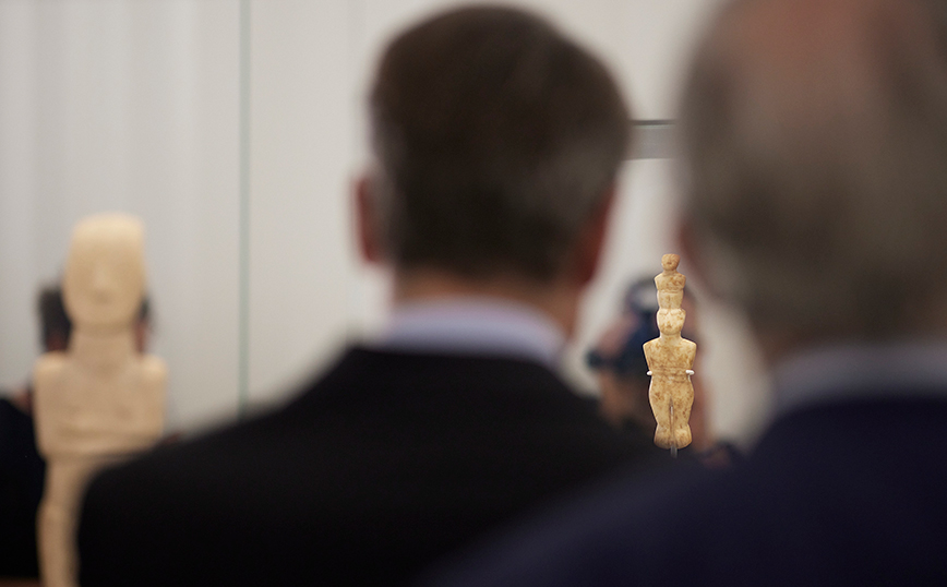 Την έκθεση «Γυρισμός. Κυκλαδικοί Θησαυροί στο Ταξίδι της Επιστροφής», μέσω της οποίας εκτίθενται για πρώτη φορά παγκοσμίως 15 από τις 161 ανεκτίμητης αξίας πρωτοκυκλαδικές αρχαιότητες της συλλογής Leonard Stern, εγκαινίασε απόψε ο Πρωθυπουργός Κυριάκος Μητσοτάκης, στο Μουσείο Κυκλαδικής Τέχνης.