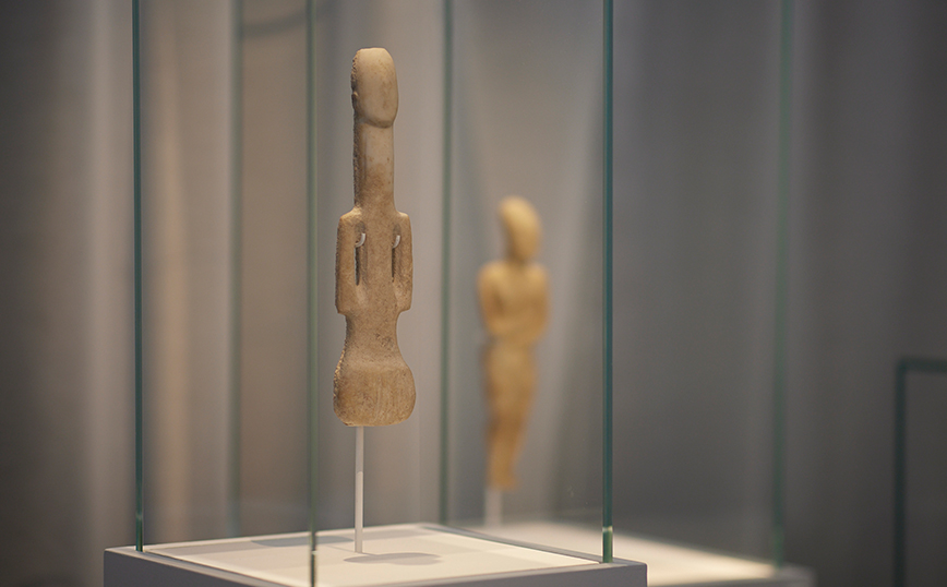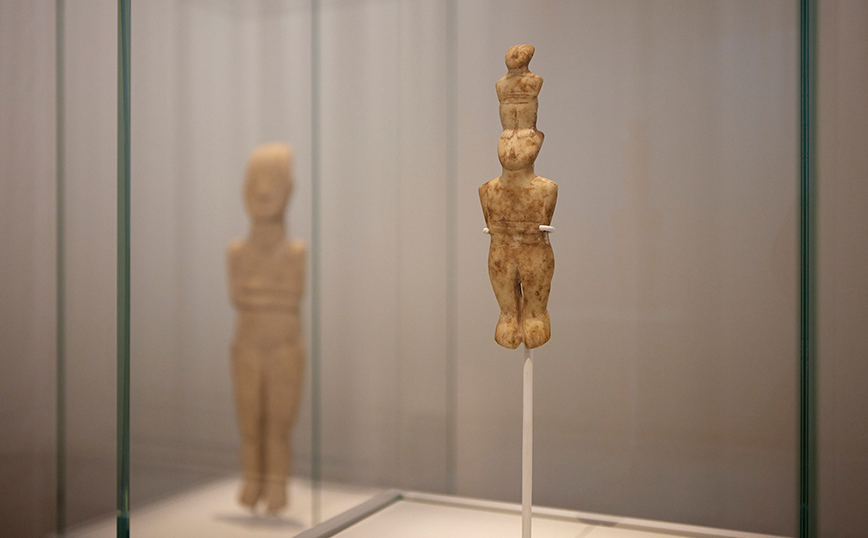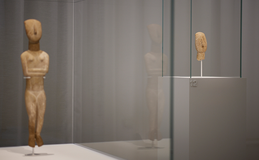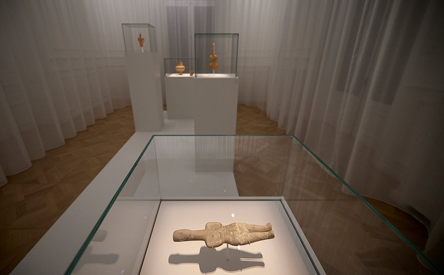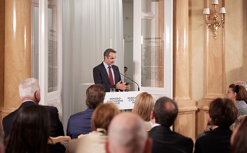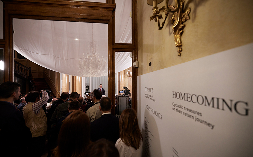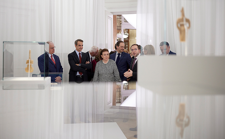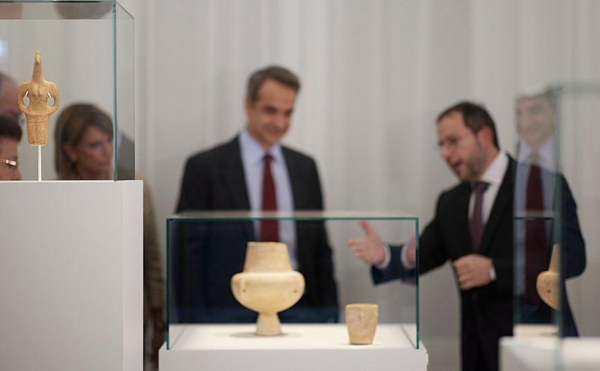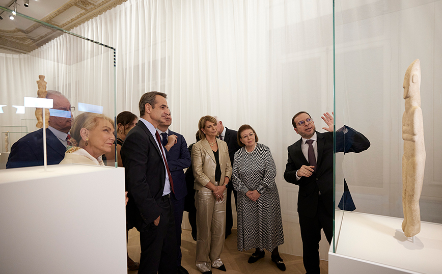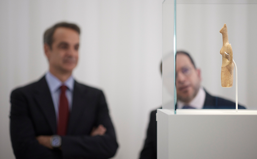 Την έκθεση «Γυρισμός. Κυκλαδικοί Θησαυροί στο Ταξίδι της Επιστροφής», μέσω της οποίας εκτίθενται για πρώτη φορά παγκοσμίως 15 από τις 161 ανεκτίμητης αξίας πρωτοκυκλαδικές αρχαιότητες της συλλογής Leonard Stern, εγκαινίασε απόψε ο Πρωθυπουργός Κυριάκος Μητσοτάκης, στο Μουσείο Κυκλαδικής Τέχνης.