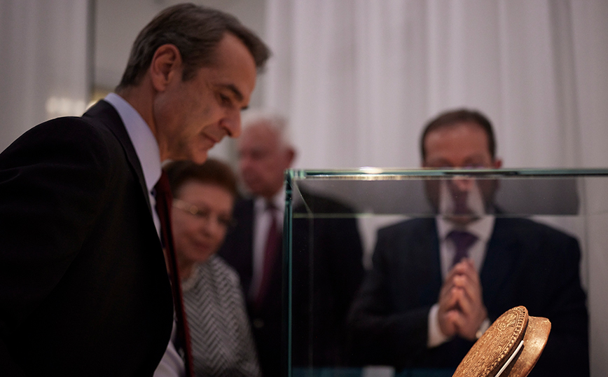 Στη συνέχεια ο Κυριάκος Μητσοτάκης ξεναγήθηκε στους χώρους της έκθεσης από τον επιμελητή της, Δρ. Ιωάννη Φάππα.