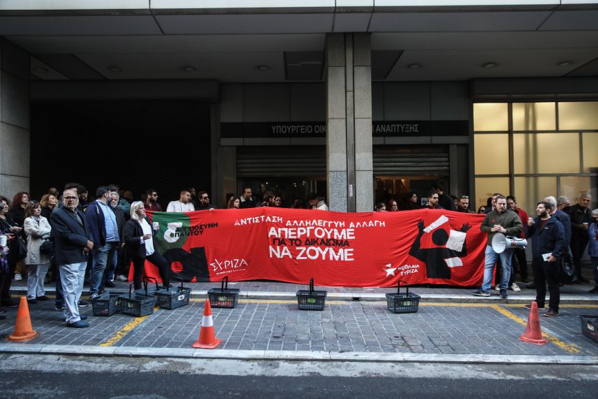 Παράσταση διαμαρτυρίας ΣΥΡΙΖΑ-Προοδευτική Συμμαχία στο υπουργείο Ανάπτυξης