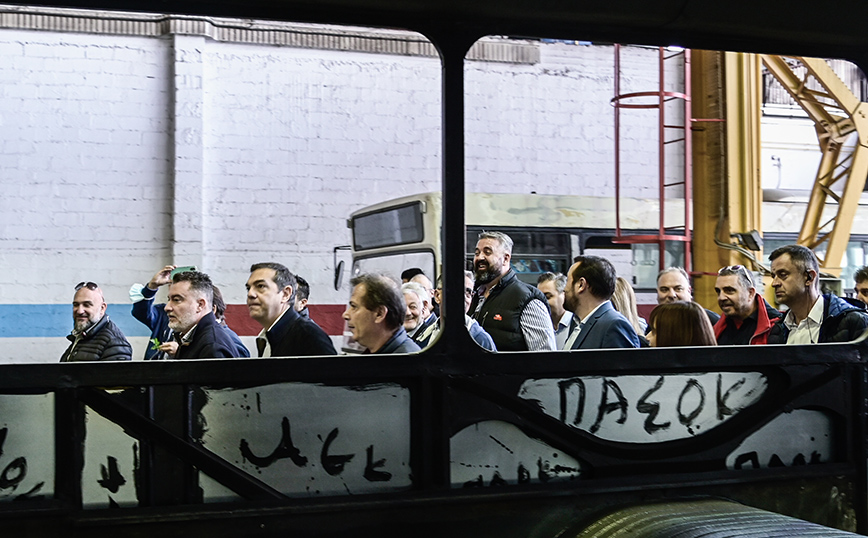 Τον πρόεδρο του ΣΥΡΙΖΑ υποδέχθηκε ο Ηλίας Γκιουλάκης, πρόεδρος του Εργατικού Κέντρου Αθηνών και Μέλος της Διοίκησης Εργαζόμενων ΟΑΣΑ και τον ξενάγησε στις εγκαταστάσεις του αμαξοστασίου. Ο κ. Γκιουλάκης υπογράμμισε την ανάγκη στήριξης της ΟΣΥ τόσο με προσλήψεις προσωπικού όσο και με ανανέωση του στόλου, όπως και της διατήρησης του δημόσιου χαρακτήρα των συγκοινωνιών.