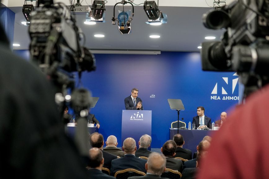 Ενωτικός, απόλυτος και ορμητικός για τη διεκδίκηση μίας νέας τετραετίας εμφανίστηκε ο πρωθυπουργός χθες μιλώντας στο ανώτερο κομματικό όργανο του κόμματός του, την πολιτική επιτροπή, η οποία συνεδρίασε στη σκιά των παρακολουθήσεων. Εξαπέλυσε σκληρή επίθεση στον ΣΥΡΙΖΑ μπαίνοντας ξεκάθαρα σε έναν ιδιότυπο διμέτωπο, έστειλε νέο μήνυμα σε επιχειρηματίες και ιδιωτικά συμφέροντα ξεκαθαρίζοντας ότι «Η Ελλάδα δεν θα γίνει μπανανία», ενώ μίλησε για την πάγια εθνική στάση της κυβέρνησης απέναντι στην Τουρκία που βάζει φρένο στις επιθετικές πρακτικές και τα αυτοκρατορικά οράματα. Ο πρωθυπουργός μίλησε για ορισμένα κέντρα που επιχειρούν να ρίξουν δηλητήριο δημιουργώντας μια αρρωστημένη πολιτική ατμόσφαιρα ως εμπόδιο σε τολμηρές αλλαγές, ξεκαθαρίζοντας ότι γυρίζει την πλάτη σε όσους τον θέλουν πιεζόμενο και την κυβέρνηση αγκυλωμένη. «Κάποιοι μάς δείχνουν τα δόντια τους. Εμείς, οι Νεοδημοκράτες, δεν μασάμε!» είπε χαρακτηριστικά.