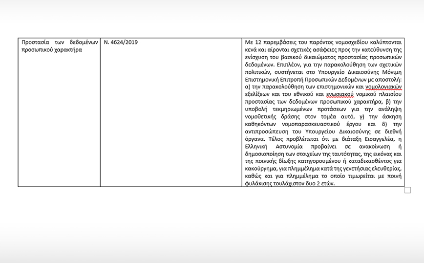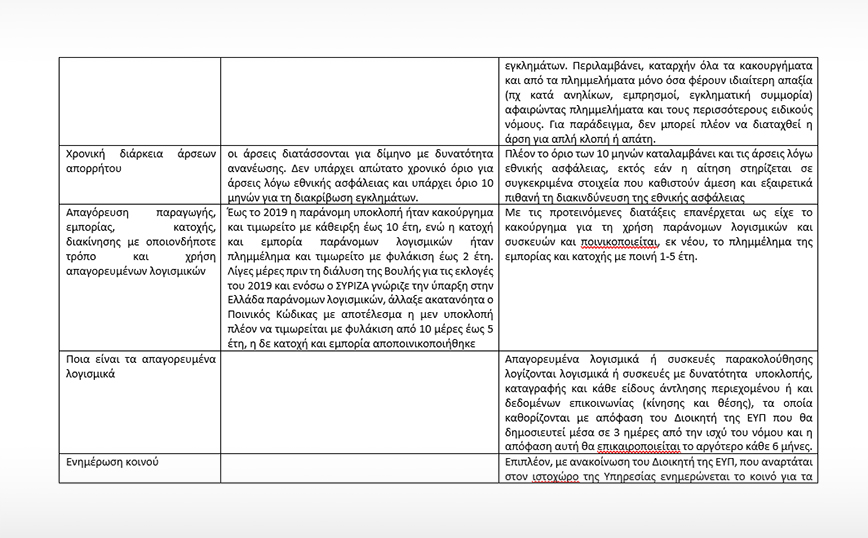 Ακολουθεί συγκριτικός πίνακας σχετικά με το τι ίσχυε και τι αλλάζει με το Σχέδιο Νόμου «Διαδικασία άρσης του απορρήτου των επικοινωνιών, κυβερνοασφάλεια και προστασία προσωπικών δεδομένων πολιτών», που τέθηκε σήμερα σε δημόσια διαβούλευση: