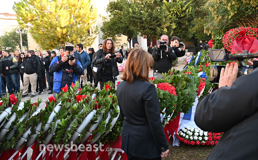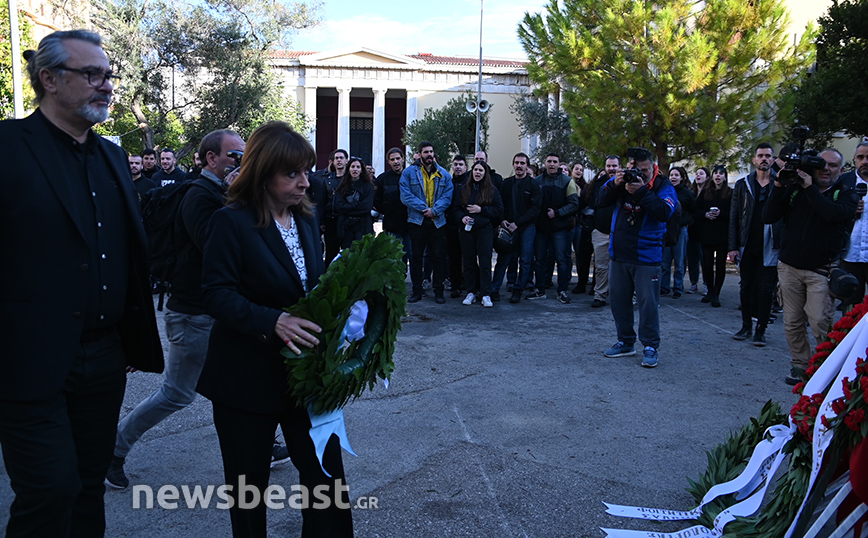 Η Πρόεδρος της Δημοκρατίας Κατερίνα Σακελλαροπούλου κατέθεσε στεφάνι σήμερα το πρωί στο Πολυτεχνείο για τον εορτασμό της 49ης επετείου από την εξέγερση κατά της δικτατορίας των συνταγματαρχών.