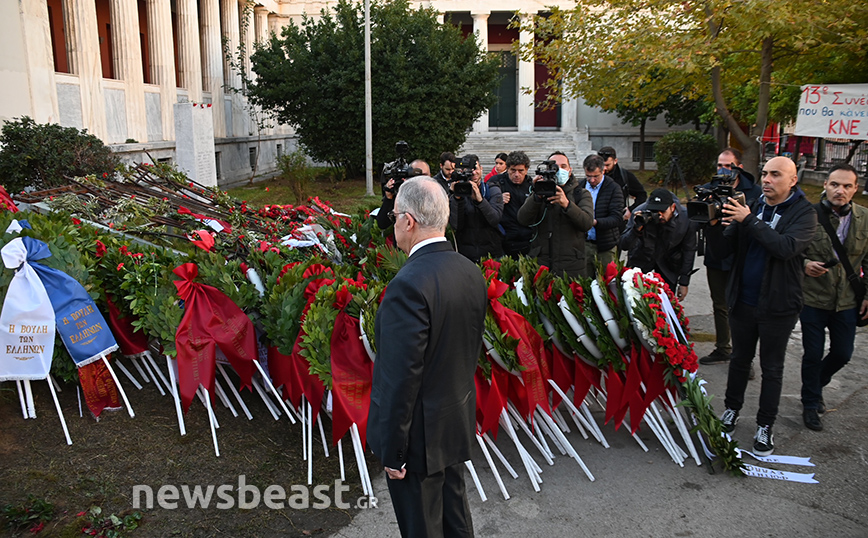 Νωρίτερα στο Πολυτεχνείο για να καταθέσει στεφάνι παρευρέθη και ο Πρόεδρος της Βουλής, Κωνσταντίνος Τασούλας.
