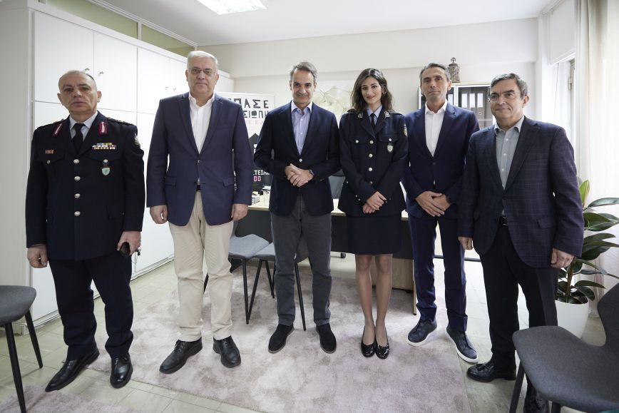 Ο πρωθυπουργός συνοδευόταν από τον Υπουργό Προστασίας του Πολίτη, Τάκη Θεοδωρικάκο, τον Υφυπουργό, Λευτέρη Οικονόμου και τον Αρχηγό της ΕΛ.ΑΣ., Κωνσταντίνο Σκούμα, ενώ είχε συζήτηση με την προϊσταμένη του Γραφείου, Υπαστυνόμο Β’ Μελίνα Ροκίδη και τον Τμηματάρχη Ανέστη Σαπουνά.