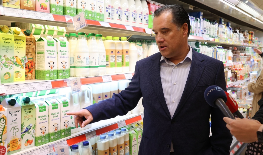 Δηλώσεις για την εξέλιξη των τιμών στα σούπερ μάρκετ, το καλάθι του νοικοκυριού και την πρωτοβουλία της Ισπανικής κυβέρνησης για μηδενισμό του ΦΠΑ σε ορισμένα είδη πρώτης ανάγκης έκανε σήμερα ο Υπουργός Ανάπτυξης και Επενδύσεων Άδωνις Γεωργιάδης, στο πλαίσιο της επίσκεψής του σε καταστήματα των αλυσίδων σούπερ μάρκετ.