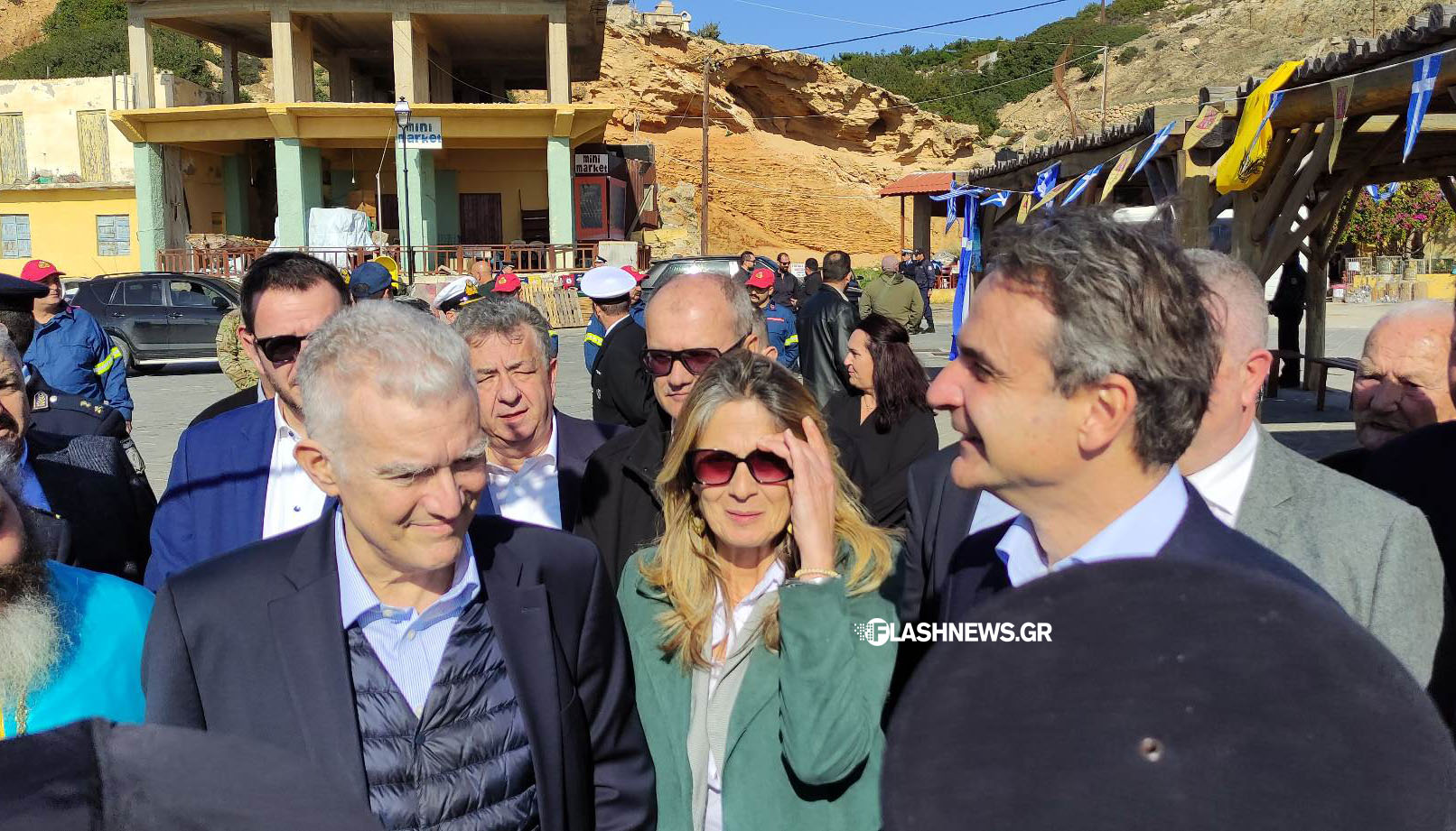 Τον πρωθυπουργό συνόδευσαν κατά την επίσκεψή του στο νησί ο Περιφερειάρχης Κρήτης, Σταύρος Αρναουτάκης και οι βουλευτές Χανίων της ΝΔ, Μανούσος Βολουδάκης και Βασίλης Διγαλάκης.