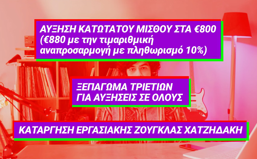 Σε αυτό επαναλαμβάνονται οι βασικές προτεραιότητες της αξιωματικής αντιπολίτευσης για τα εργασιακά: άμεση αύξηση του κατώτατου μισθού στα 800 ευρώ, «αλλά πλέον εν μέσω πληθωριστικής κρίσης και η θέσπιση μηχανισμού ετησιας τιμαριθμικής αναπροσαρμογής, επομένως για το τρέχον έτος με πληθωρισμό 10% ο κατώτατος μισθός θα πάει στα 880 ευρώ». Επιπλέον, «κατάργηση νόμων Χατζηδάκη, η επαναφορά ρυθμίσεων για την αιτιολογημένη απόλυση, για το οκτάωρο, για τις βασικές αρχές των συλλογικών διαπραγματεύσεων, για τη δήλωση των ωραρίων και των υπερωριών, η επανίδρυση του ΣΕΠΕ. Και η σταδιακή εφαρμογή του 35άωρου χωρίς μείωση των αποδοχών».