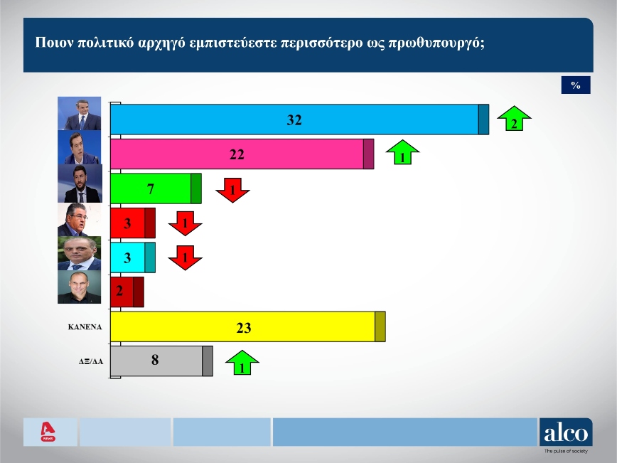 Στο ερώτημα ποιον πολιτικό αρχηγό εμπιστεύεστε περισσότερο ως πρωθυπουργό: