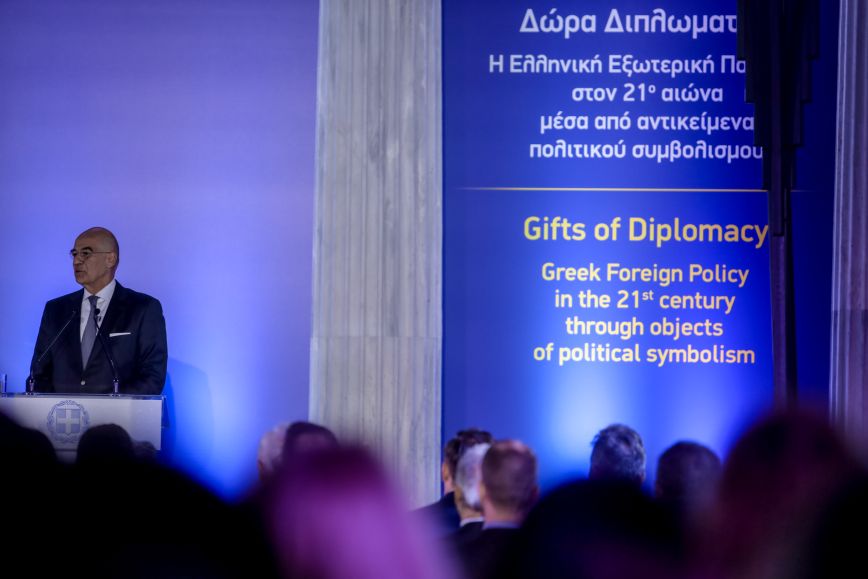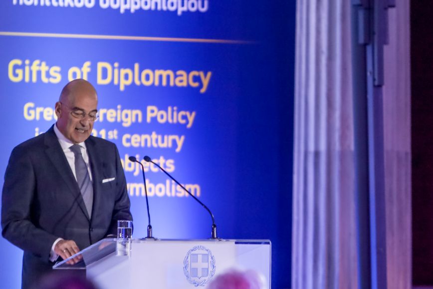 Την ανάγκη για προσαρμογή της ελληνικής εξωτερικής πολιτικής στις διαρκώς μεταβαλλόμενες συνθήκες, με μια στρατηγική που αποπνέει σιγουριά και αυτοπεποίθηση, με στοχευμένες δράσεις, όχι κοινότοπες διαπιστώσεις, καθώς και για εθνική ομοψυχία, υπογράμμισε ο υπουργός Εξωτερικών Νίκος Δένδιας μιλώντας στην έκθεση «Δώρα Διπλωματίας: Η Εξωτερική Πολιτική τον 21ο αιώνα μέσα από αντικείμενα πολιτικού συμβολισμού», που πραγματοποιείται σήμερα και αύριο στο Ζάππειο.