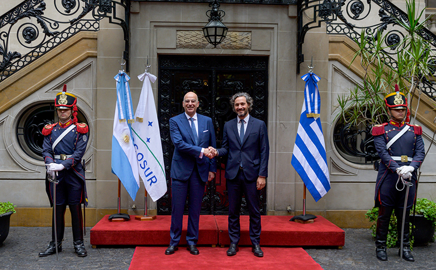 Η Ελλάδα και η Αργεντινή είναι χώρες που έχουν άριστες σχέσεις μεταξύ τους και ούτε ένα καταγεγραμμένο πρόβλημα για δεκαετίες και η γέφυρα που τις συνδέει είναι οι χιλιάδες πολίτες ελληνικής καταγωγής που ζουν και ευημερούν στη χώρα αυτή της Λατινικής Αμερικής, τόνισε ο υπουργός Εξωτερικών Νίκος Δένδιας, μιλώντας στην τελετή ανακοίνωσης της δωρεάς της Ελλάδας στον δήμο Μπερίσο. Με τη δωρεά αυτή και σε συνεργασία με τον δήμο Μπερίσο και την τράπεζα Banco Nación, θα κατασκευαστούν δύο γήπεδα ποδοσφαίρου με την ονομασία «Ελλάδα» (Grecia), με στόχο τη στήριξη της νεολαίας και του αθλητισμού.