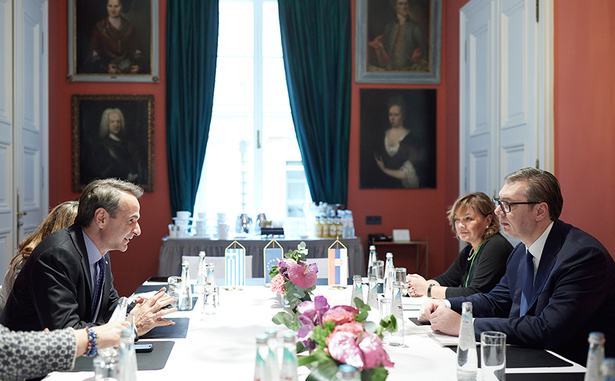 Οι ηγέτες αντάλλαξαν απόψεις για τις εξελίξεις στην περιοχή, ενώ ο Κυριάκος Μητσοτάκης επαναβεβαίωσε τη στήριξη της Ελλάδας στην ευρωπαϊκή προοπτική των Δυτικών Βαλκανίων.