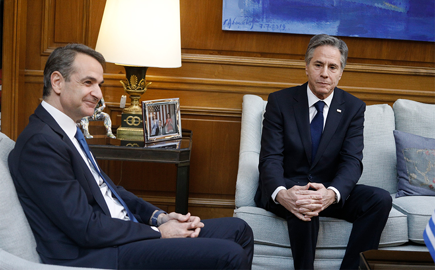 Μία συνάντηση διάρκειας 25 λεπτών, σε θερμό κλίμα, καθώς και δείπνο εργασίας είχαν χθες ο πρωθυπουργός Κυριάκος Μητσοτάκης με τον υπουργό Εξωτερικών των Ηνωμένων Πολιτειών, Άντονι Μπλίνκεν, στο Μέγαρο Μαξίμου. Τρεις ήταν οι βασικοί πυλώνες που συζητήθηκαν, σύμφωνα με την εφημερίδα «ΤΑ ΝΕΑ».