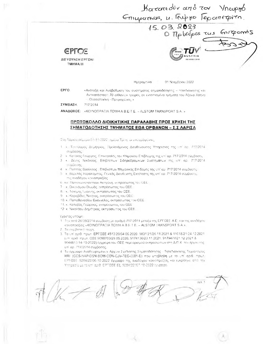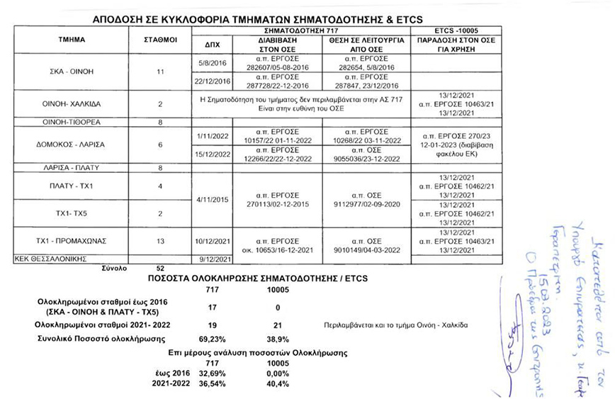 Στη δημοσιότητα δίνει η κυβέρνηση τα έγγραφα που κατέθεσε χθες στην κοινοβουλευτική επιτροπή παραγωγής και εμπορίου της βουλής ο υπουργός Επικρατείας αρμόδιος για τις μεταφορές Γιώργος Γεραπετρίτης, τα οποία αποδεικνύουν ότι το 2016 παραδόθηκε το 32,69% της επίμαχης σύμβασης 717 τηλεδιοίκησης – φωτοσήμανσης και εκ του οποίου το 15% χρειάστηκε να φτιαχτεί ξανά μετά το 2019, δηλαδή ουσιαστικά είχε παραδοθεί μόλις το 18%.