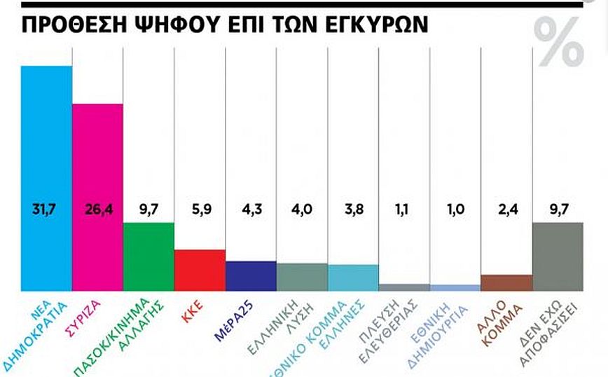 Πόλος υποδοχής ψηφοφόρων είναι ακόμη το Εθνικό Κόμμα Ελληνες του έγκλειστου στις φυλακές Ηλία Κασιδιάρη, που κινείται ανοδικά στο 3,7% (+0,7%), παρόλο που η συμμετοχή του στις κάλπες θα κριθεί με βάση τη νέα νομοθεσία για τις εγκληματικές οργανώσεις από τον Αρειο Πάγο μετά την επίσημη προκήρυξη των εκλογών.