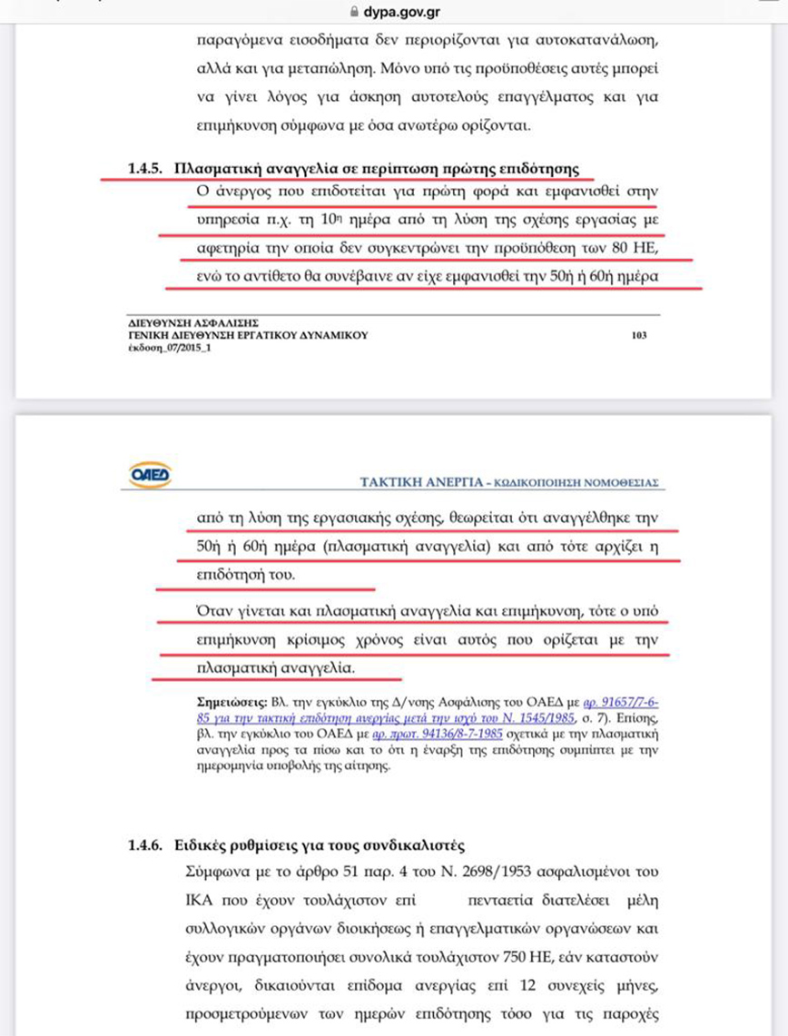 «Αντίθετα», εξηγεί, «όπως αποδεικνύεται από το επίσημο έγγραφο του ΟΑΕΔ στο gov.gr που επισυνάπτω, ο όρος “πλασματική αναγγελία σε περίπτωση πρώτης επιδότησης”, σε καμία περίπτωση δεν σημαίνει πλαστή ή εικονική πρόσληψη. Έχει εντελώς άλλο νόημα και περιεχόμενο, δεν αφορά εμένα, είναι καθαρά υπηρεσιακός και αφορά τον τρόπο λειτουργίας των ίδιων των υπηρεσιών του ΟΑΕΔ».