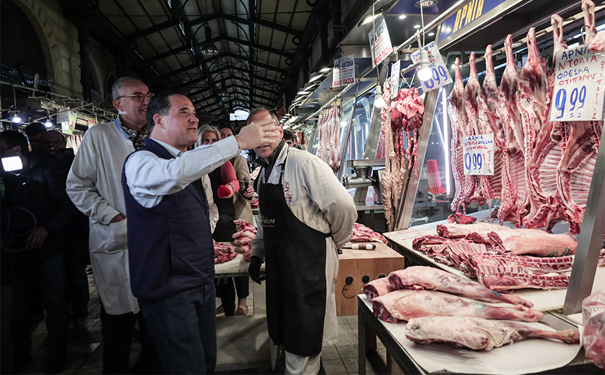 «Σε γενικές γραμμές οι τιμές στο αρνί και το κατσίκι έχουν μείνει στα περυσινά επίπεδα και πιο κάτω», όπως σημείωσε ο υπουργός Ανάπτυξης και Επενδύσεων Άδωνις Γεωργιάδης κατά την επίσκεψη του στη Βαρβάκειο-Κεντρική Κρεαταγορά Αθηνών.