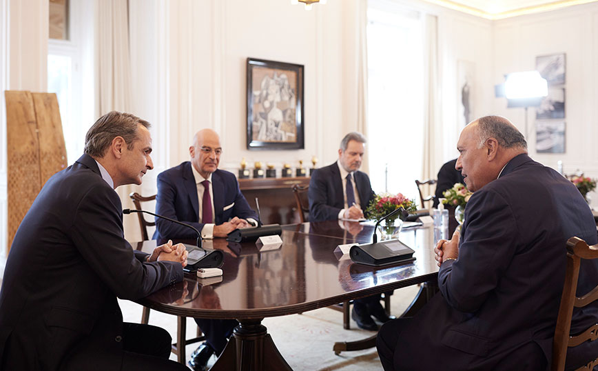 Ο Κυριάκος Μητσοτάκης συναντήθηκε με τον υπουργό Εξωτερικών της Αιγύπτου Sameh Shoukry και συζήτησαν για τα ενεργειακά, αλλά και για τις στρατηγικές σχέσεις των δύο κρατών.