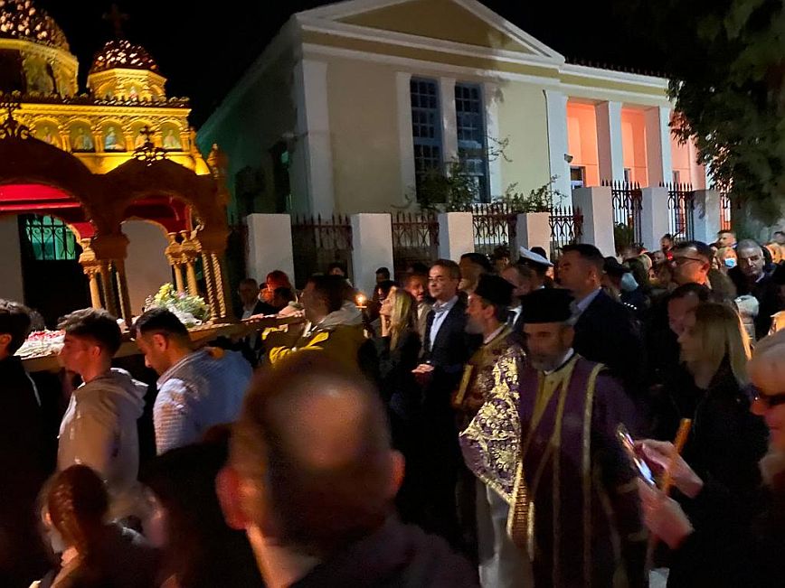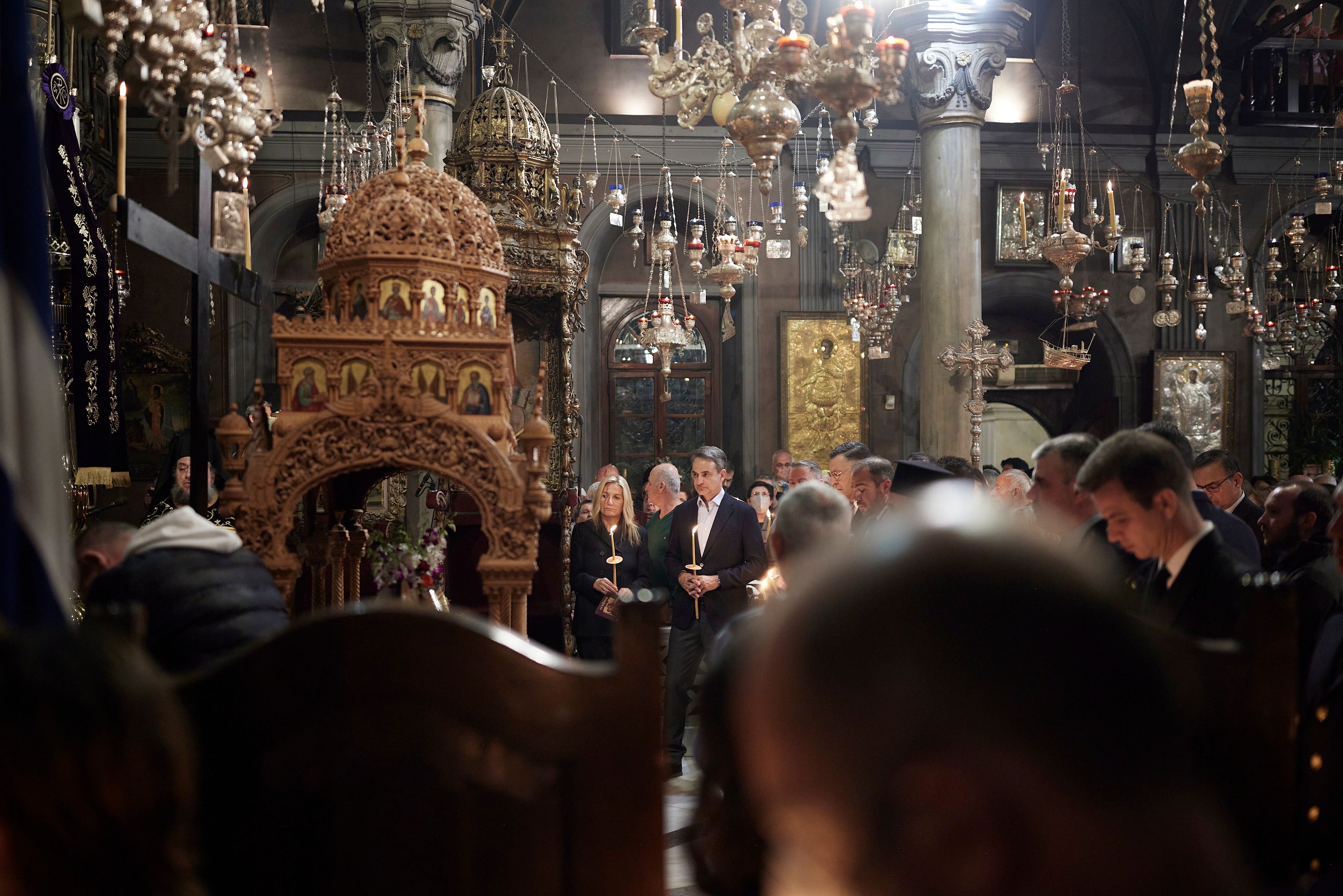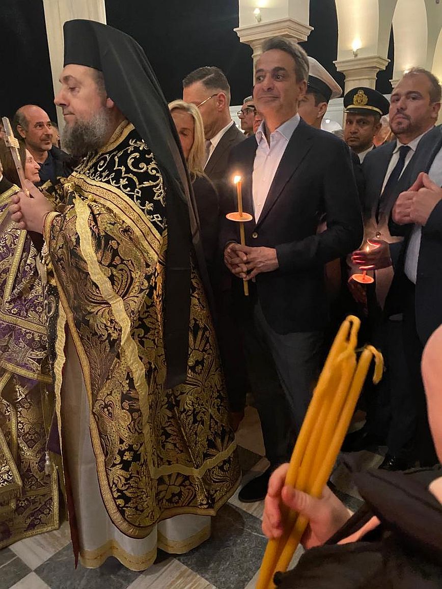 Την Ακολουθία και στην συνέχεια την περιφορά του Επιταφίου παρακολουθεί ο πρωθυπουργός Κυριάκος Μητσοτάκης στην Παναγία Ευαγγελίστρια της Τήνου όπου βρίσκεται για το τριήμερο του Πάσχα.