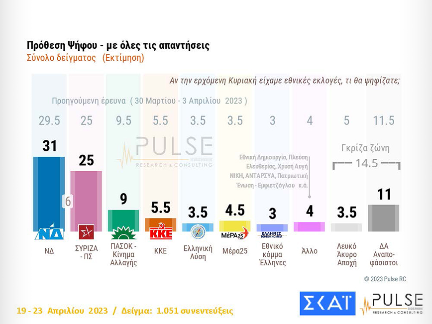 Η αδιευκρίνιστη ψήφος φθάνει το 11%.