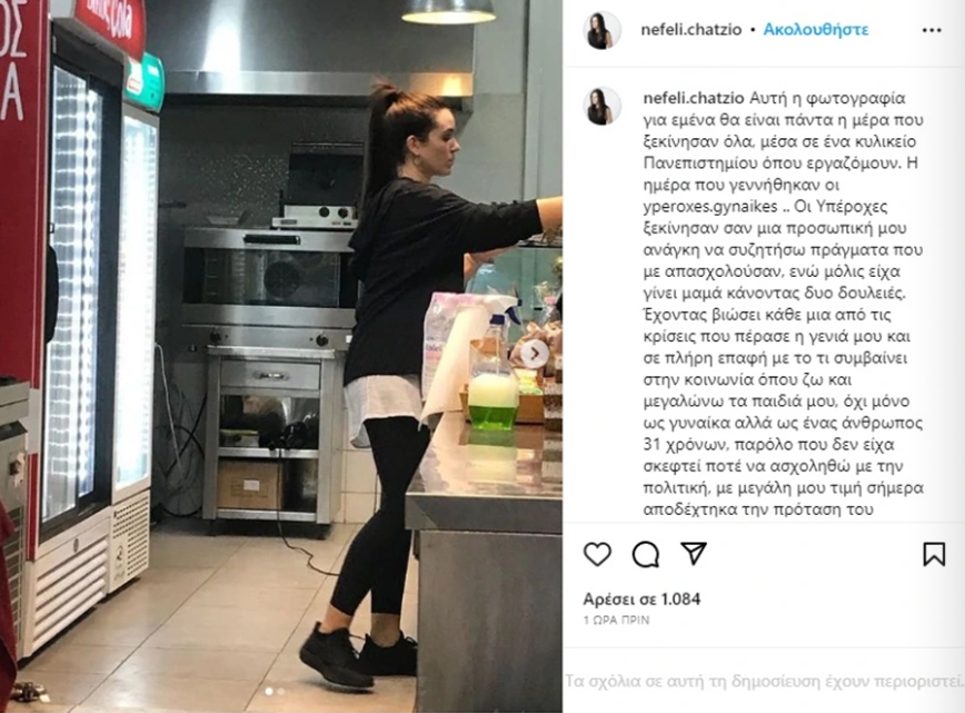 «Αυτή η φωτογραφία για εμένα θα είναι πάντα η μέρα που ξεκίνησαν όλα, μέσα σε ένα κυλικείο Πανεπιστημίου όπου εργαζόμουν. Η ημέρα που γεννήθηκαν οι yperoxes.gynaikes… Οι Υπέροχες ξεκίνησαν σαν μια προσωπική μου ανάγκη να συζητήσω πράγματα που με απασχολούσαν, ενώ μόλις είχα γίνει μαμά κάνοντας δυο δουλειές. Έχοντας βιώσει κάθε μια από τις κρίσεις που πέρασε η γενιά μου και σε πλήρη επαφή με το τι συμβαίνει στην κοινωνία όπου ζω και μεγαλώνω τα παιδιά μου, όχι μόνο ως γυναίκα αλλά ως ένας άνθρωπος 31 χρόνων, παρόλο που δεν είχα σκεφτεί ποτέ να ασχοληθώ με την πολιτική, με μεγάλη μου τιμή σήμερα αποδέχτηκα την πρόταση του @kyriakos_ να ασχοληθώ ακόμα πιο ενεργά για όλα όσα παλεύω ήδη, συμμετέχοντας ως μια από τις 8 γυναίκες στο ψηφοδέλτιο επικρατείας της Νέας Δημοκρατίας. Θελω να τονίσω κάτι που θα έπρεπε να είναι αυτονόητο. Ότι τα θέματα με τα οποία ασχολούμαι τόσο προσωπικά αλλά και ως κοινότητα των Υπέροχων Γυναικών, όπως η εμφυλη βία, η κακοποίηση των παιδιών, οι έμφυλες ανισότητες, ο ρατσισμός κ.α. είναι υπερκομματικά, υπεράνω πολιτικής και παρατάξεων. Είναι προβλήματα που μας ενώνουν όλους και ακριβώς αυτό το νόημα έχει και η παρουσία μου στο ψηφοδέλτιο επικρατείας. Ευχαριστώ όσους ανθρώπους με στήριξαν σε αυτό το πρωτόγνωρο για εμένα βήμα και υπόσχομαι ότι δεν θα τους διαψεύσω».