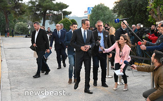 «Πολλά μικρόφωνα. Υπάρχει ενδιαφέρον τελικά» ανέφερε ο Κυριάκος Μητσοτάκης, τοποθετούμενος μπροστά στους συγκεντρωμένους δημοσιογράφους για να προχωρήσει στις δηλώσεις του.