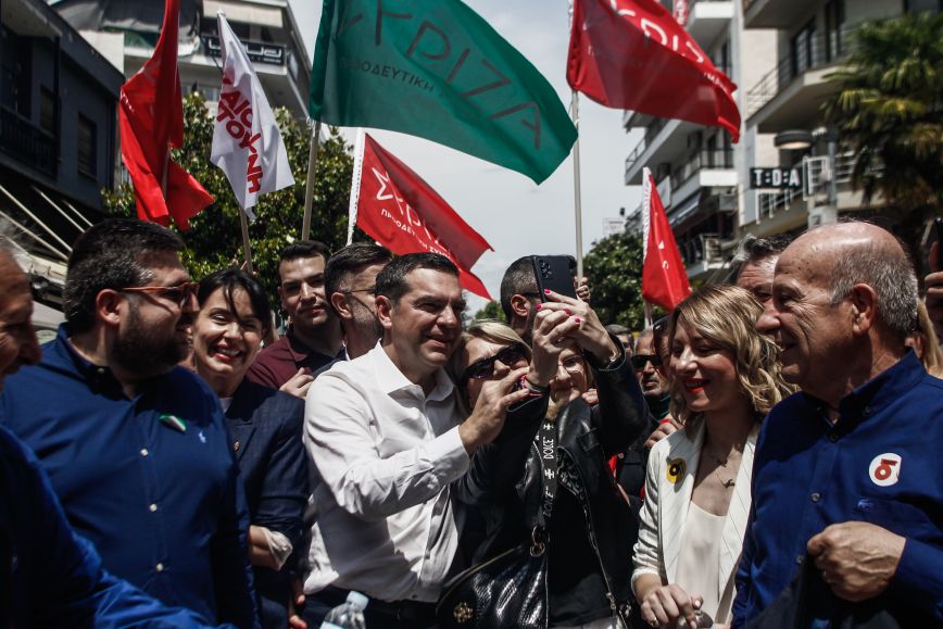 Εν συνεχεία απευθύνθηκε στο ΠΑΣΟΚ-ΚΙΝΑΛ -«στους φίλους μας από το χώρο της σοσιαλδημοκρατίας». Ρώτησε: «άραγε με ποιον θέλετε σοσιαλδημοκρατική κυβέρνηση; Με τον κ. Μητσοτάκη, τον Βορίδη, τον Γεωργιάδη και τον Πλεύρη;». «Σας αναγνωρίζουμε πλήρως το δικαίωμα να υπερασπίζεστε την πολιτική και πνευματική παρακαταθήκη του Ανδρέα Παπανδρέου», συνέχισε, «προσέξτε όμως, αν κάτι πρέπει να θυμόμαστε όλοι από αυτή την παρακαταθήκη είναι ότι ο Ανδρέας δεν είχε ποτέ μέτωπο με τις προοδευτικές δυνάμεις. Ένα ήταν το μέτωπο του, η Δεξιά». «Γι’ αυτό εγώ επαναλαμβάνω σήμερα από τα Τρίκαλα», τόνισε, «ένα είναι το μέτωπο μας, ο κ. Μητσοτάκης και η χειρότερη κυβέρνηση από τη Μεταπολίτευση και μετά». Ο κ. Τσίπρας κάλεσε το ΠΑΣΟΚ «να αφήσετε αυτούς τους ανιστόρητους διμέτωπους και αν πραγματικά το πιστεύετε αυτό που λέτε ότι πρέπει να λογοδοτήσουν οι υπεύθυνοι του παρακράτους των παράνομων υποκλοπών, ένας τρόπος μόνο υπάρχει: να έχουμε στις 22 Μάη προοδευτική κυβέρνηση, προοδευτική πλειοψηφία, όχι ξανά την κυβέρνηση Μητσοτάκη».
