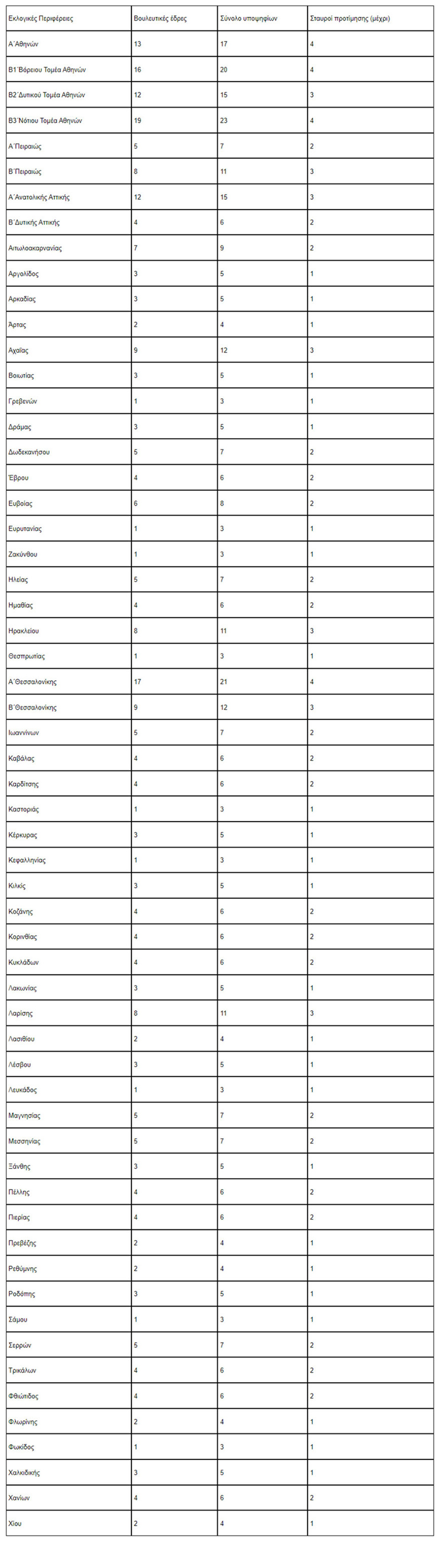 Η σταυροδοσία ανά εκλογική περιφέρεια