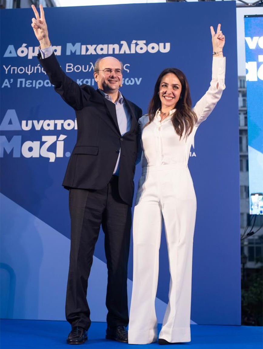 Εντυπωσιακή και γεμάτη παλμό ήταν η κεντρική προεκλογική συγκέντρωση της υφυπουργού Εργασίας και Κοινωνικών Υποθέσεων και υποψήφιας βουλευτού Α’ Πειραιά της Νέας Δημοκρατίας, Δόμνας Μιχαηλίδου. Δυναμική ήταν και η ανταπόκριση και συμμετοχή δεκάδων μελών της κυβέρνησης. Υπουργοί, Υφυπουργοί, Γενικοί Γραμματείς, Διοικητές και Πρόεδροι Οργανισμών, Ιδρυμάτων και Κρατικών φορέων απ’ όλη την Ελλάδα, έδειξαν με την παρουσία τους ότι στηρίζουν την κ. Μιχαηλίδου.