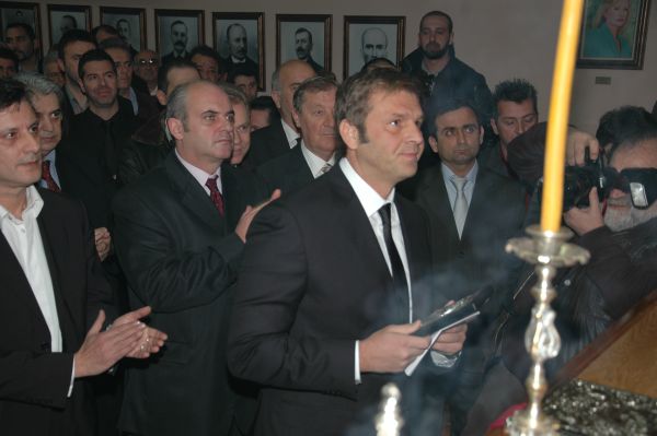 Ο Μητροπολίτης Φθιώτιδας που χοροστάτησε στην τελετή ορκωμοσίας δώρισε στον Απόστολο Γκλέτσο μια εικόνα των Αγίων Αποστόλων.