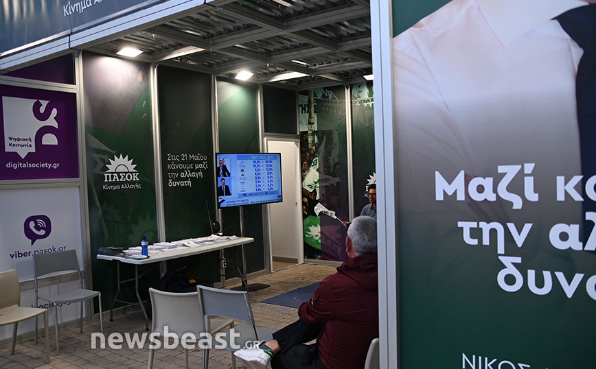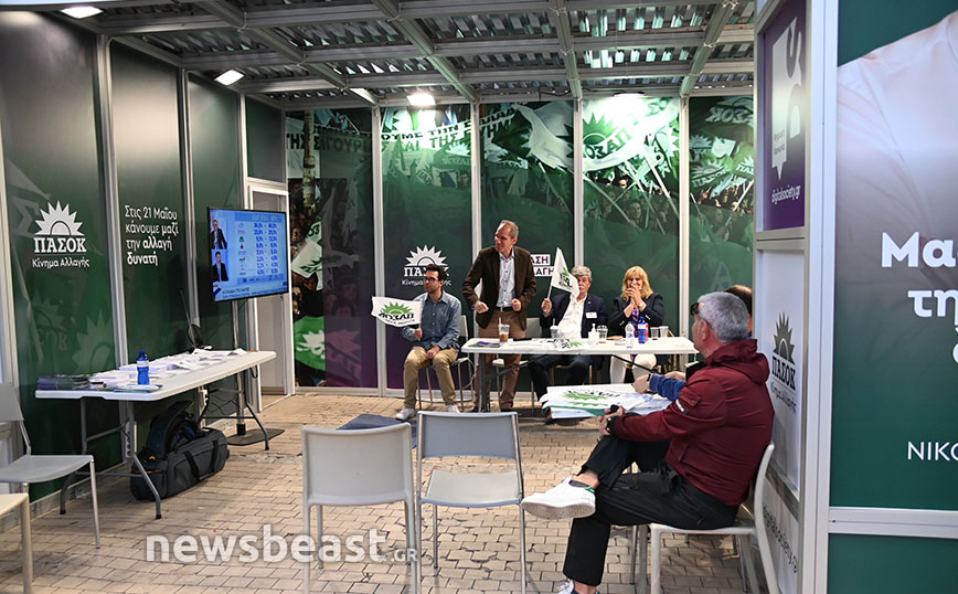 Δείτε τις πρώτες εικόνες από το κεντρικό περίπτερο του ΠΑΣΟΚ – ΚΙΝΑΛ στην πλατεία Κοραή.