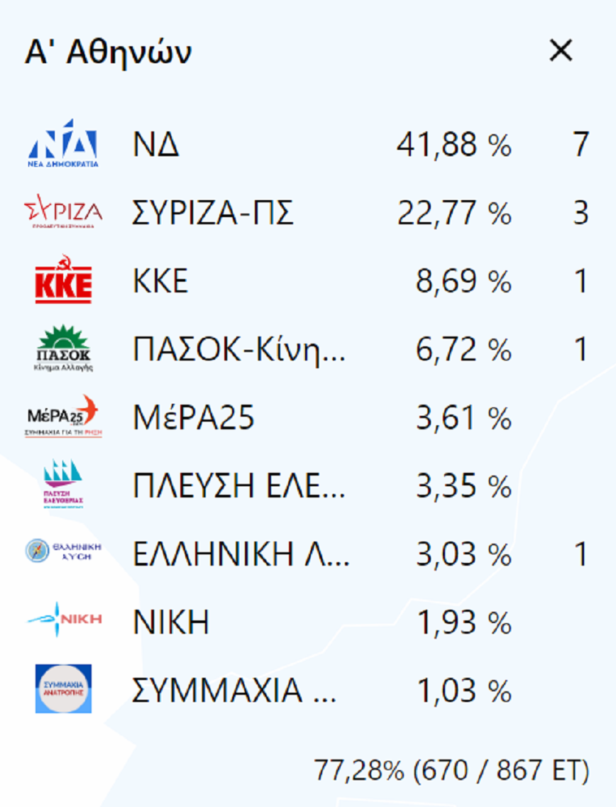 Η Νέα Δημοκρατία είναι ο μεγάλος νικητής στις εκλογές και όπως όλα δείχνουν, η χώρα ενδέχεται να πάει για δεύτερη φορά στις κάλπες, ενώ ενδιαφέρον παρουσιάζουν τα αποτελέσματα στην Αθήνα.