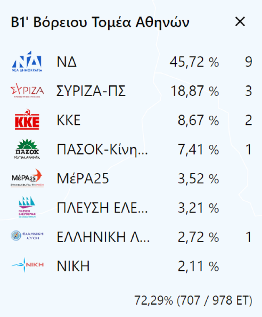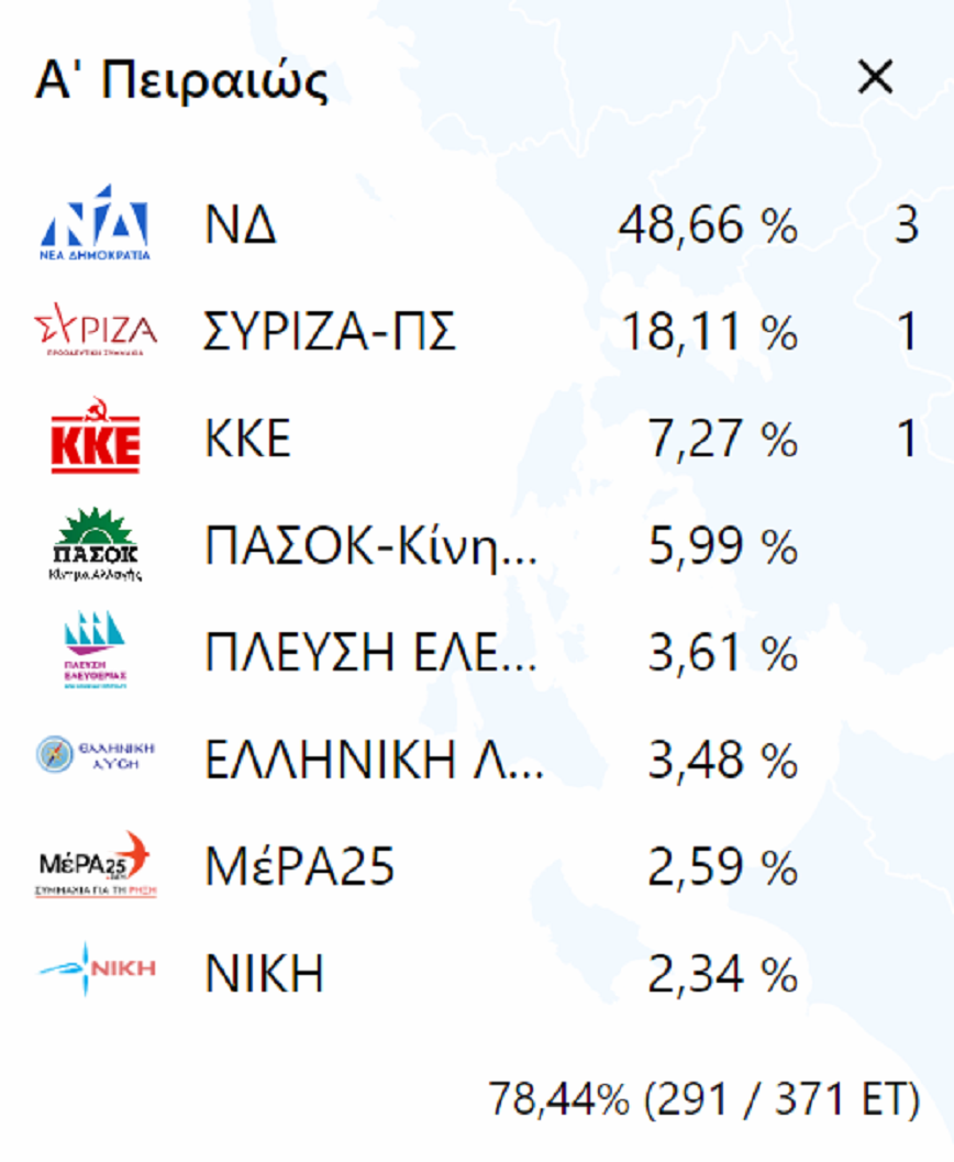 Σύμφωνα με το υπουργείο Εσωτερικών, η γαλάζια παράταξη ξεπέρασε κατά πολύ τον ΣΥΡΙΖΑ.