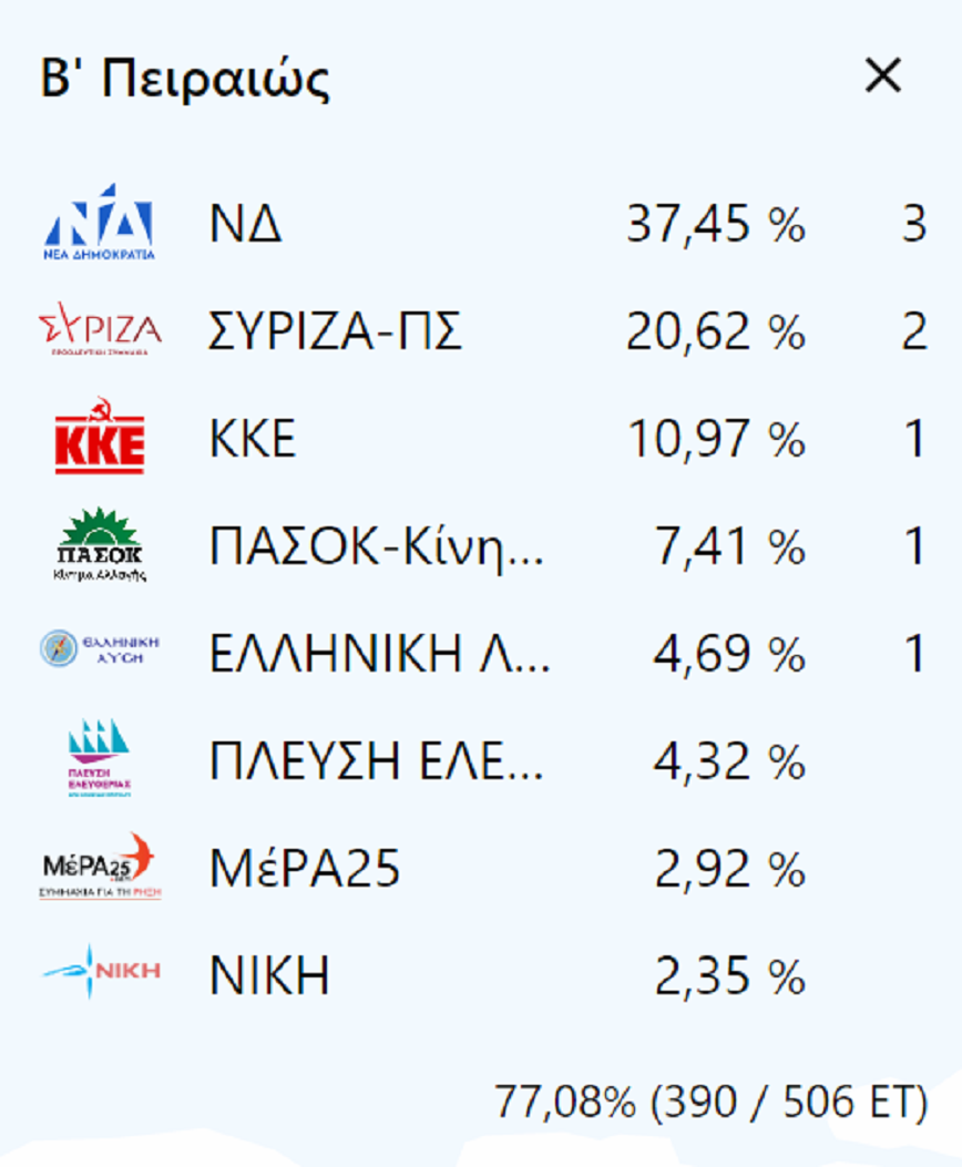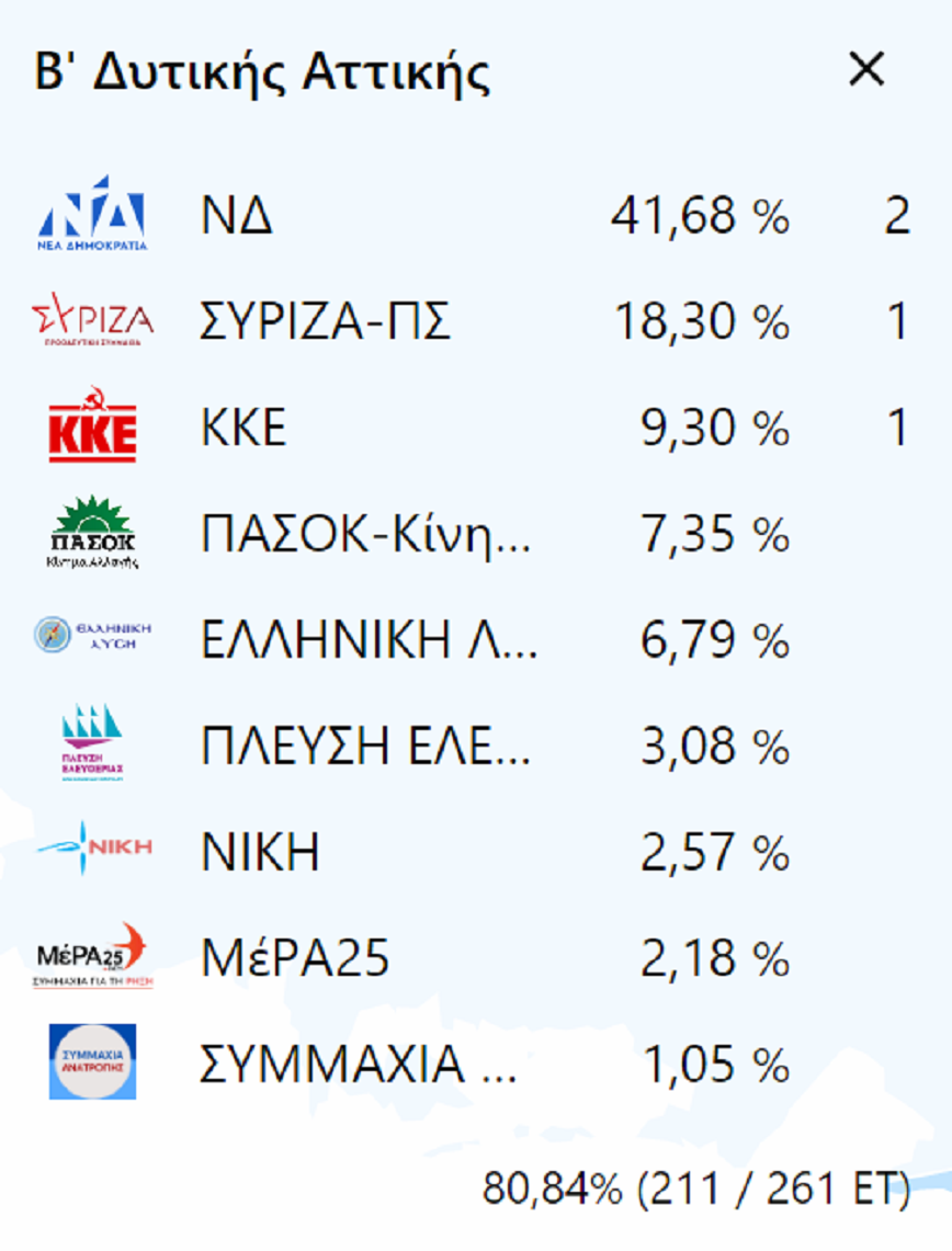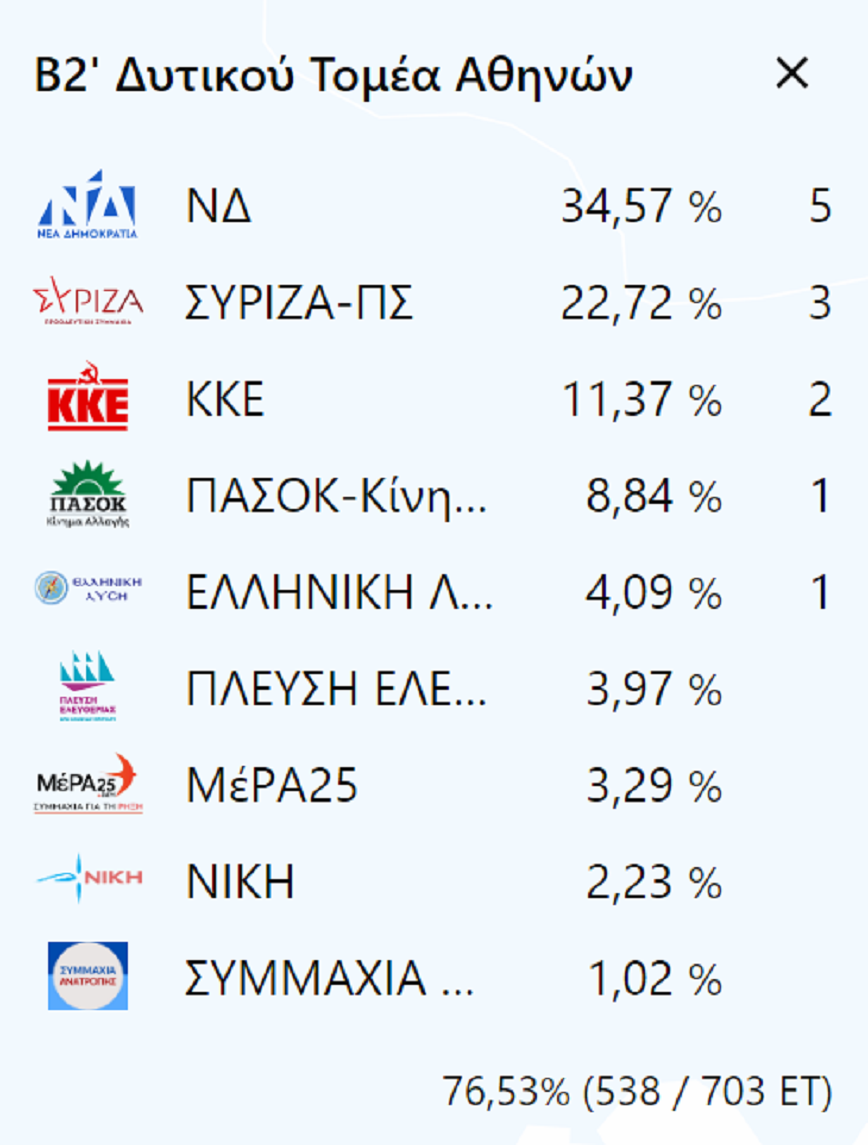 Ακολουθούν αναλυτικά τα αποτελέσματα:
